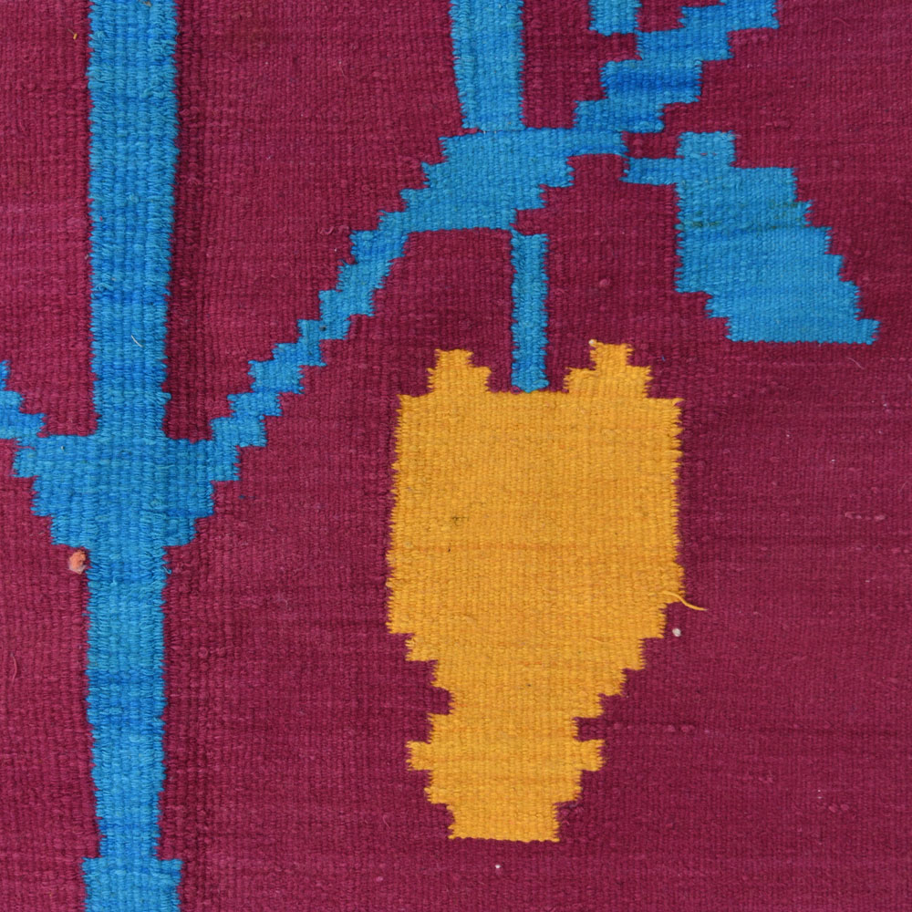Magenta Handmade Durry With Boy Girl And Two Mango Trees.