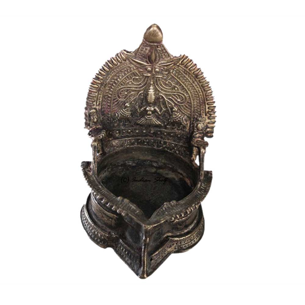 . South India (Kumbakonam, Tamil Nadu) Brass Oil Lamp. An Old Used Oil Lamp. It is Made by Lost Wax Process by Tribal Craftsmen. It Depicts Goddess Maha Lakshmi. Adds Spiritual Flavor to You Decor. Vegetable Oil, Mustard Oil or Desi Ghee can be Use to Light the Lamp with Cotton Wicks.