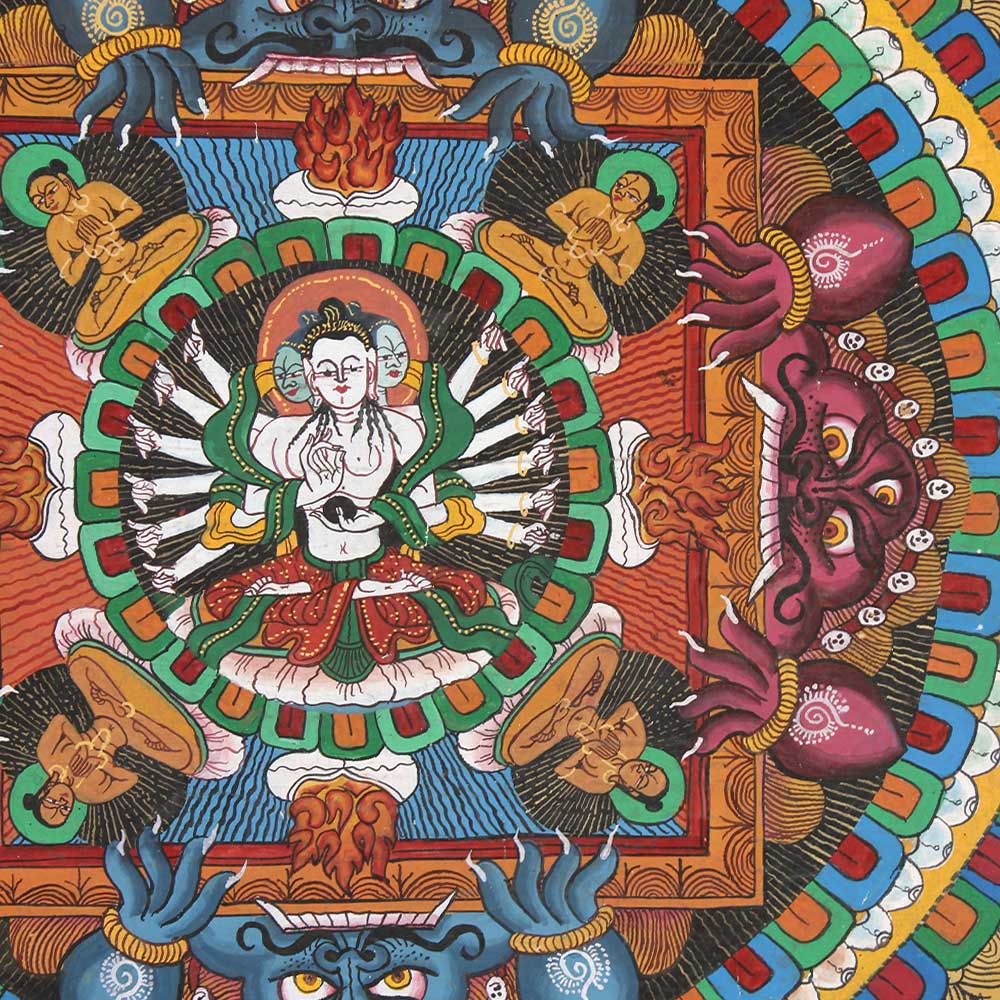 The Thangka painting tradition is distinguished by a distinct style that is both strange and wonderful. There is a significant message behind each image of Buddhas, Bodhisattvas, Mythical creatures, scary Dharmapalas, mythological animals, Gurus, and elaborate Mandalas.