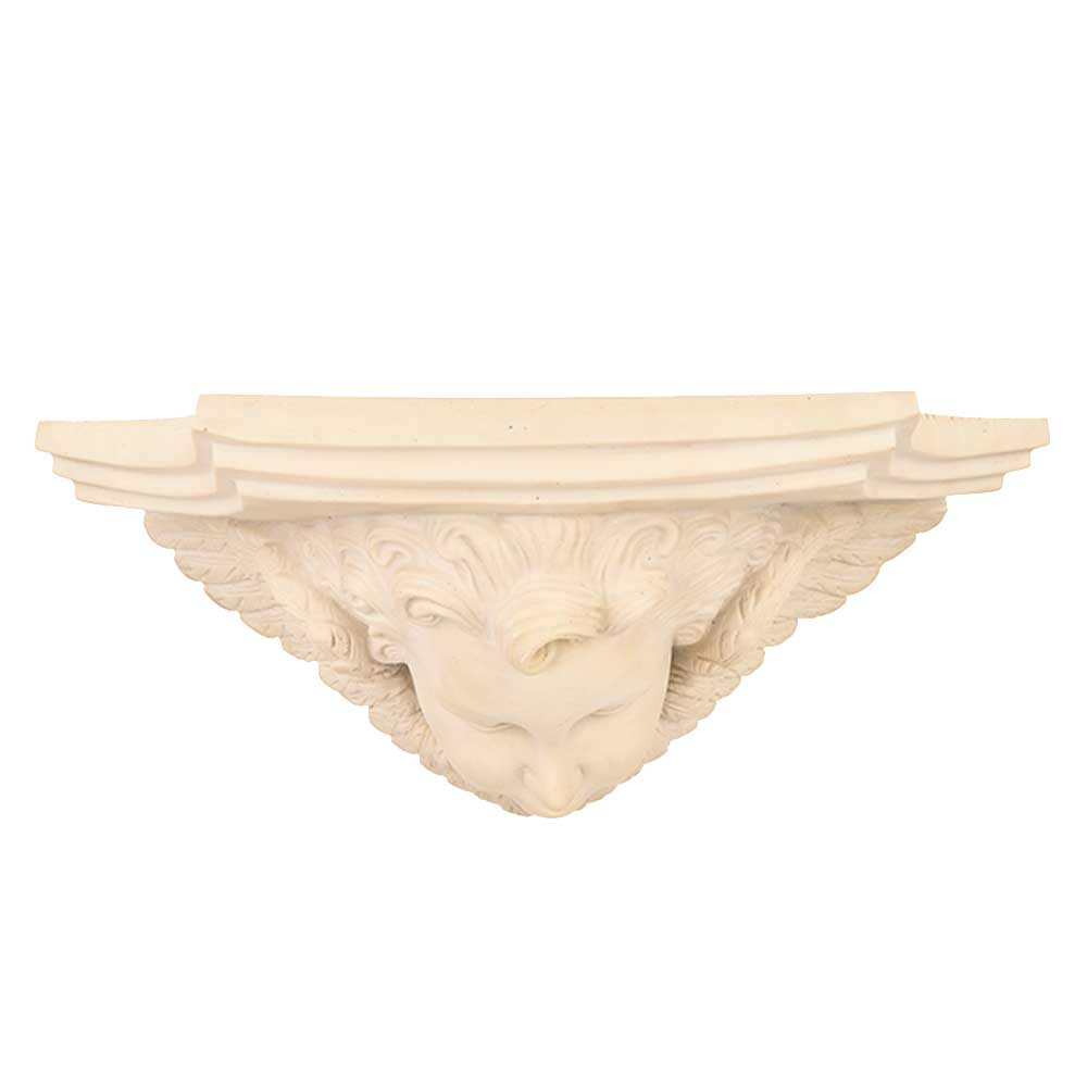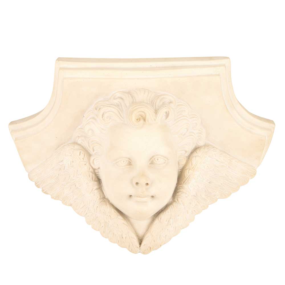 Vintage wall sconce shelf in shape of angel cherub face with wings. It is a beautiful creamy white color with some antique brown accents.Place your favourite Photo Frames or lovely Candle lit Holders on it.
