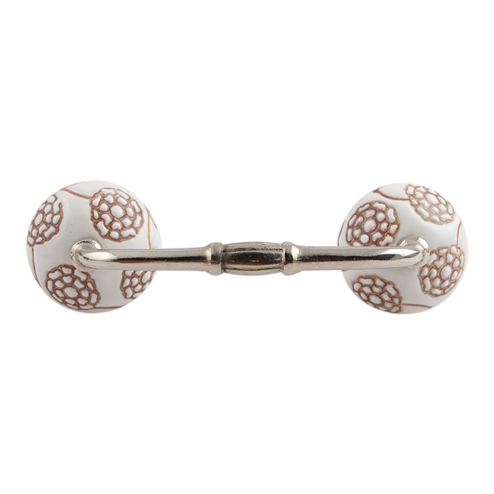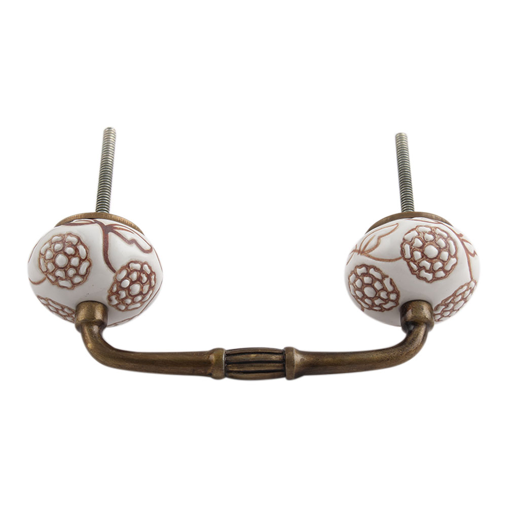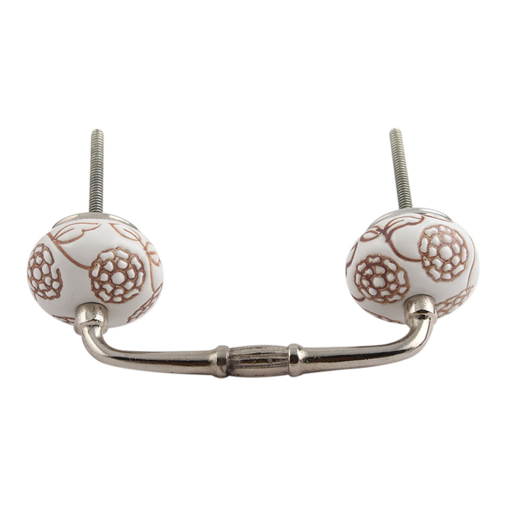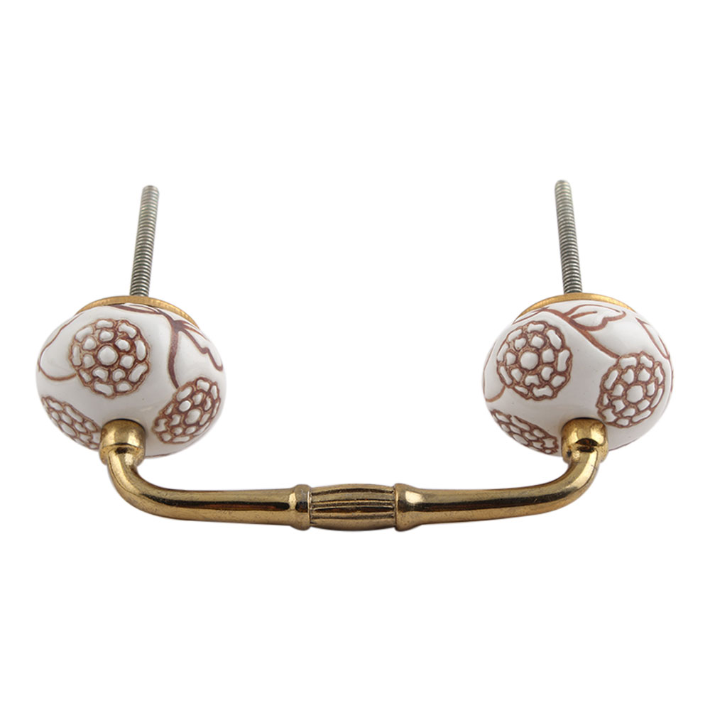 Marigold Brown Etched Ceramic Floral Bridge Handle. Ideal for Drawer, Dresser, Cabinet, Wardrobe, Cupboard and Almirah.