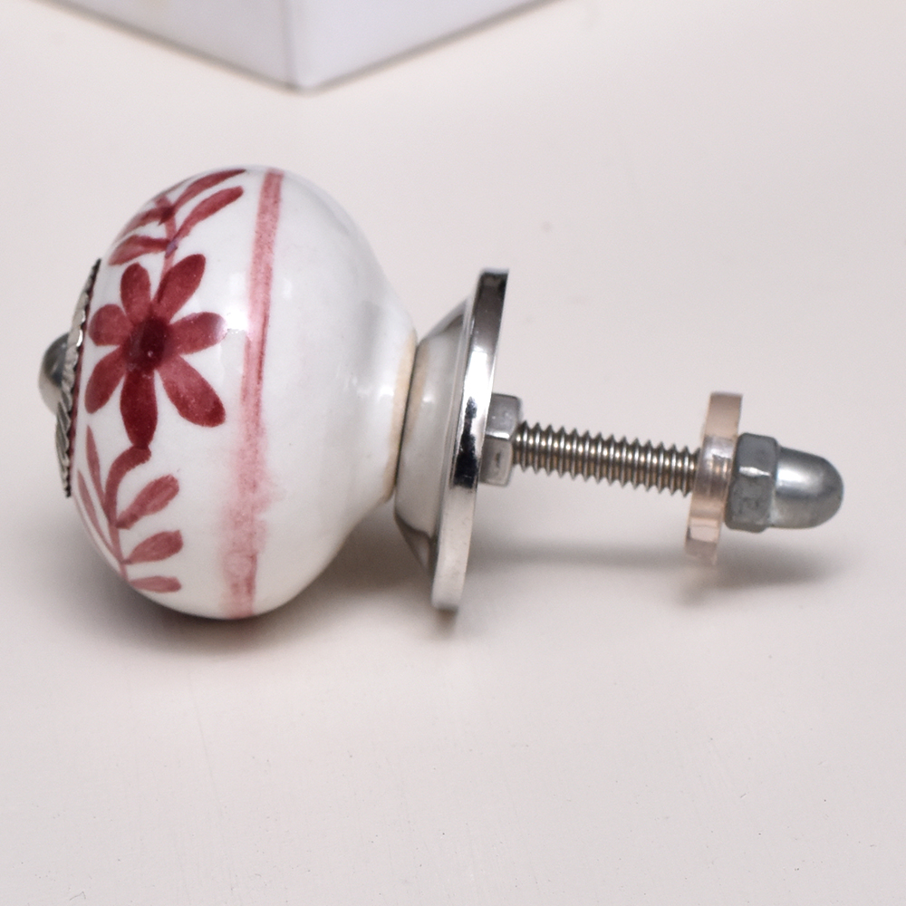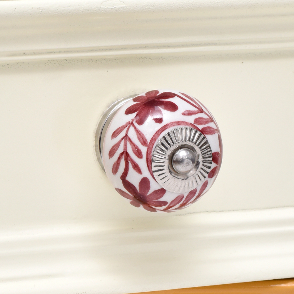 Each Maroon Flower Ceramic Knob is hand-painted with precision, ensuring a unique finish on every piece. The contrasting maroon hue, paired with the soft, organic floral pattern, creates a harmonious design that enhances any furniture or cabinetry.