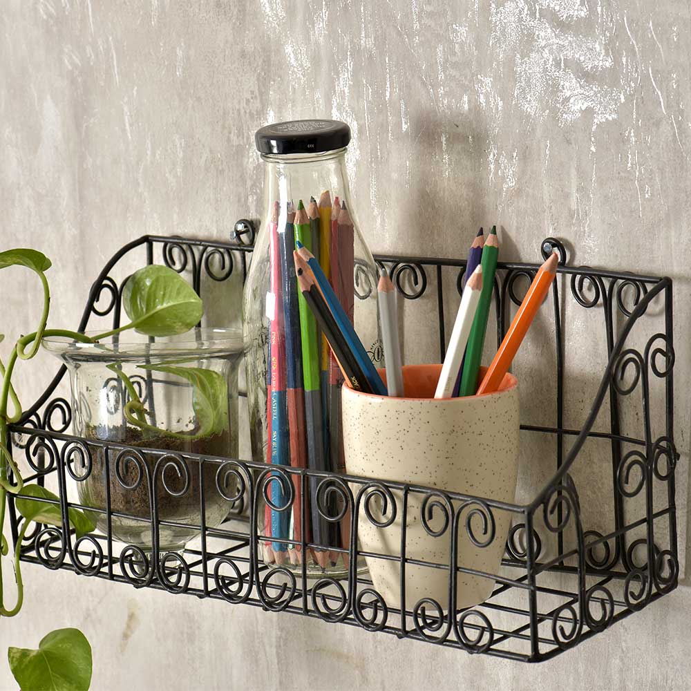 This metal mesh basket turns empty wall space into functional storage or delightful display space! The wall basket is versatle and can be used in bathroom , Study or foyer area. The wall mounted shelf does not include the things used for display during photoshoot.