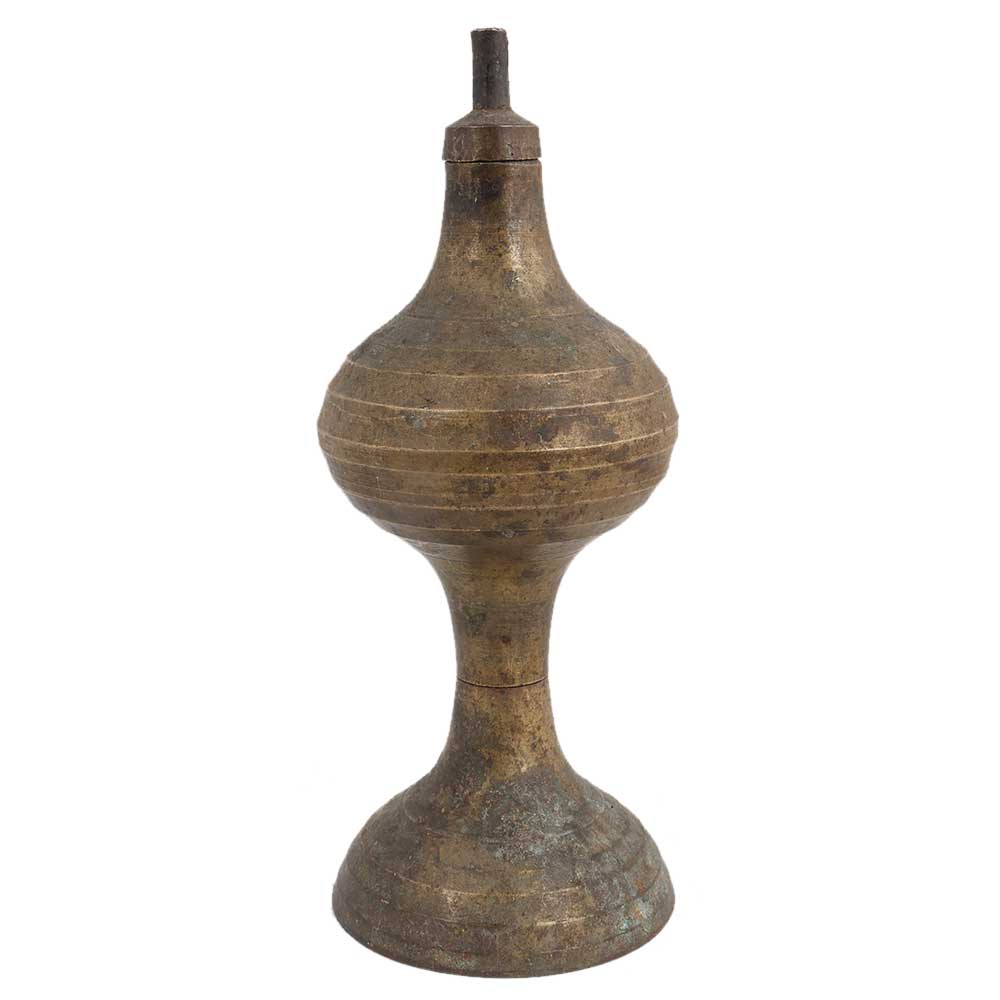 Very old rustic looking Very old rustic looking brass oil lamp with a single wick and a pillar shaped body to lighten up your home interior, hotel, restaurant , spas . Diwali gift, wedding gift, new year gift, house warming gift.