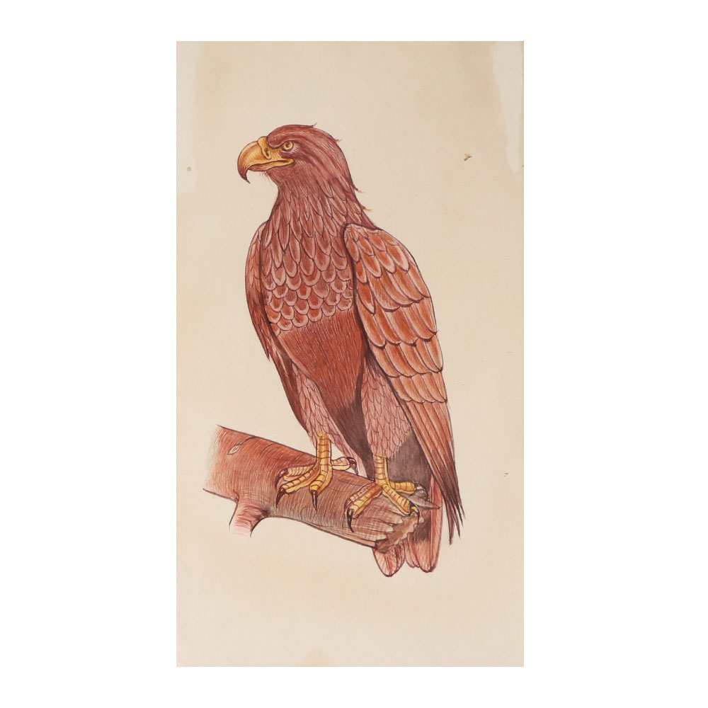 Large, hefty-beaked birds of prey, eagles. They have fully feathered, frequently crested heads, unlike vultures. Eagles utilise the same nest each year, are monogamous, and have lifelong partners. Since ancient Babylonia, eagles have represented war and imperial power because of their strength; examples of their likeness may be seen on Greek and Roman ruins, coins, and medals. The perfect gift idea for a biologist is this watercolor painting of a Golden Eagle perched on a branch.