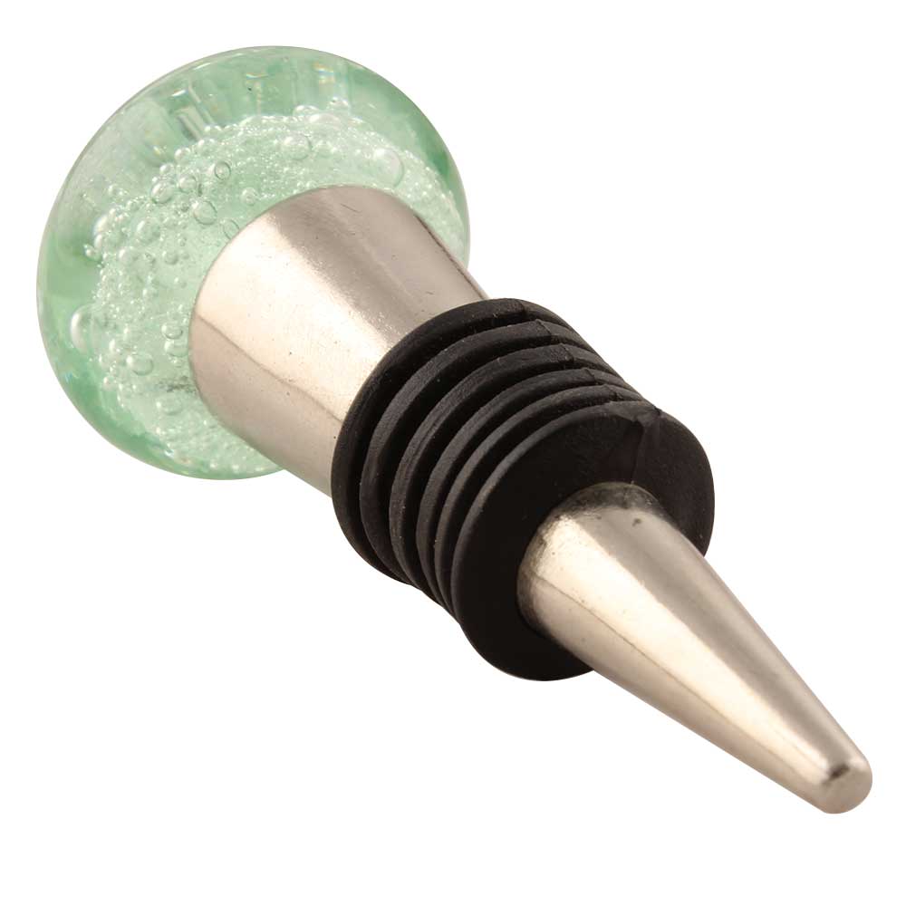 Mint Bubble Glass Wine Stopper. Zinc Alloy Wine Bottle Stopper with Attractive Jute Bag Packaging.