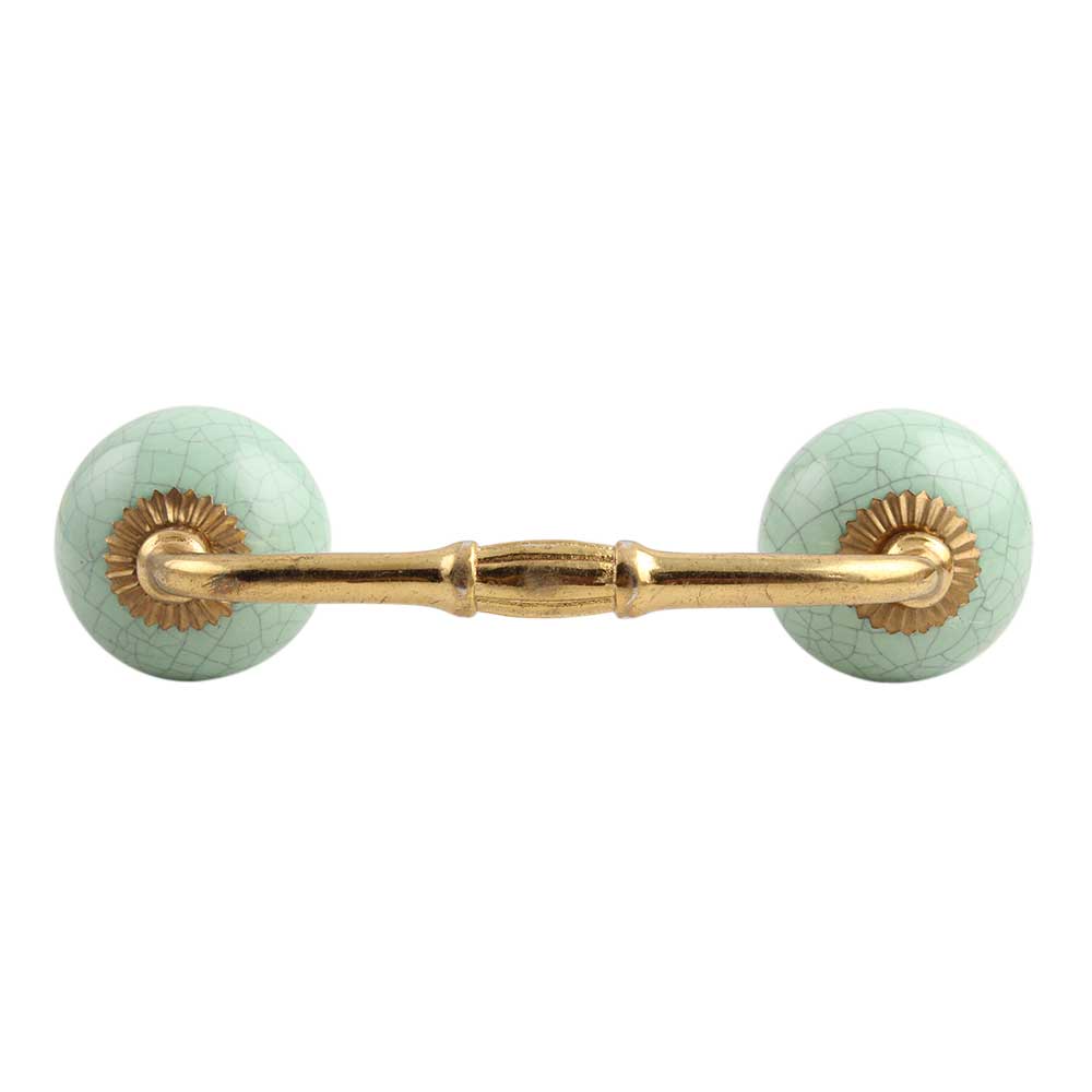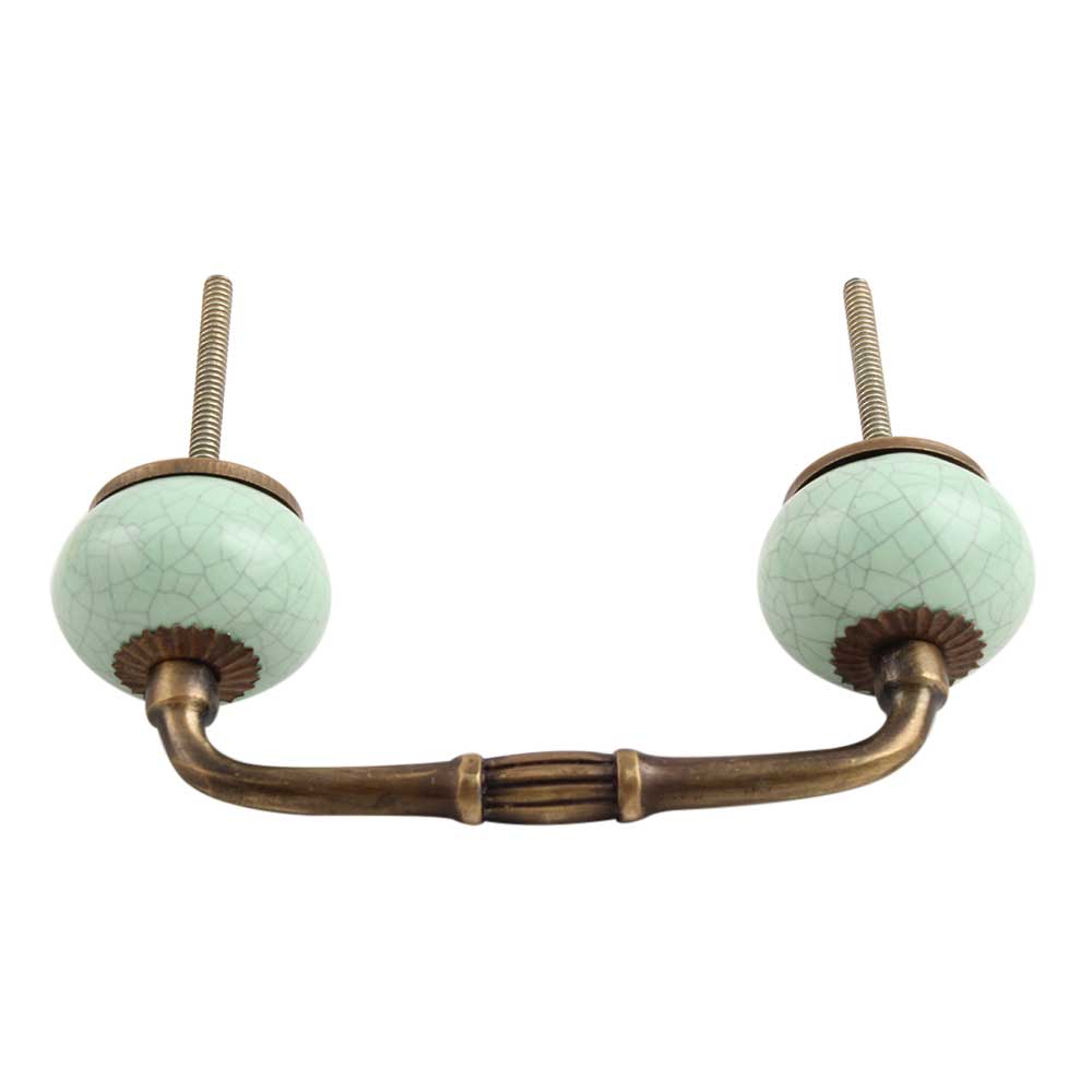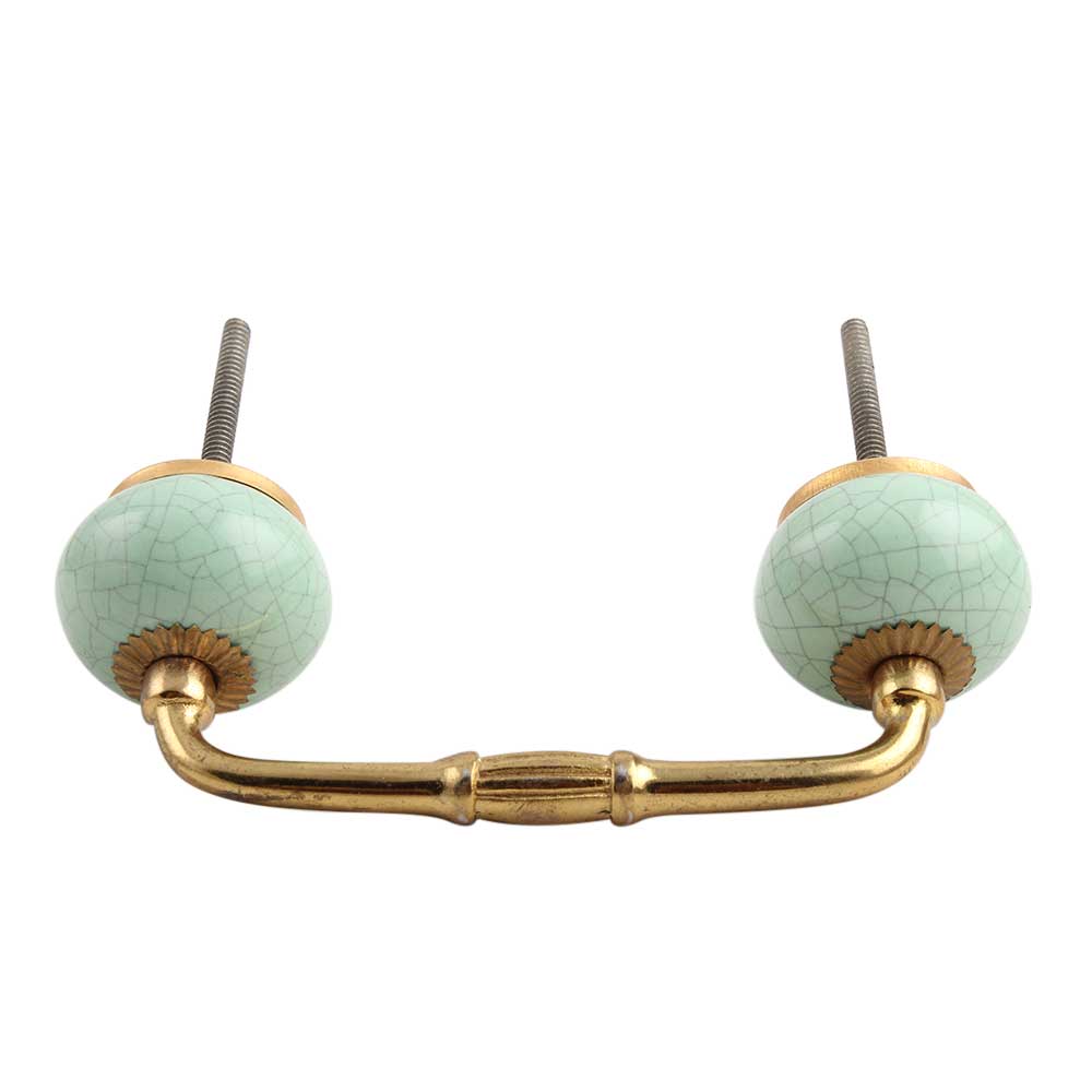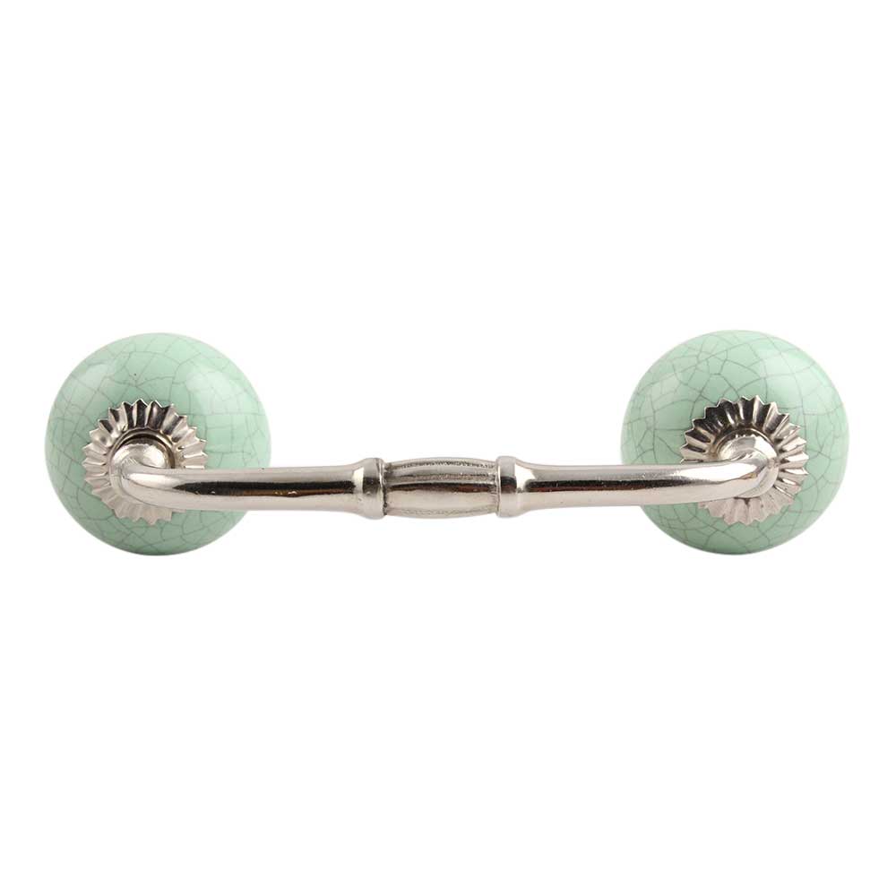 Mint Green Crackle Ceramic Bridge Handle. Ideal for Drawer, Dresser, Cabinet, Wardrobe, Cupboard and Almirah.