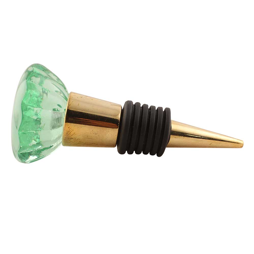 Mint Paneled Sides Glass Wine Stopper in Golden Fitting. Zinc Alloy Wine Bottle Stopper with Attractive Jute Bag Packaging.