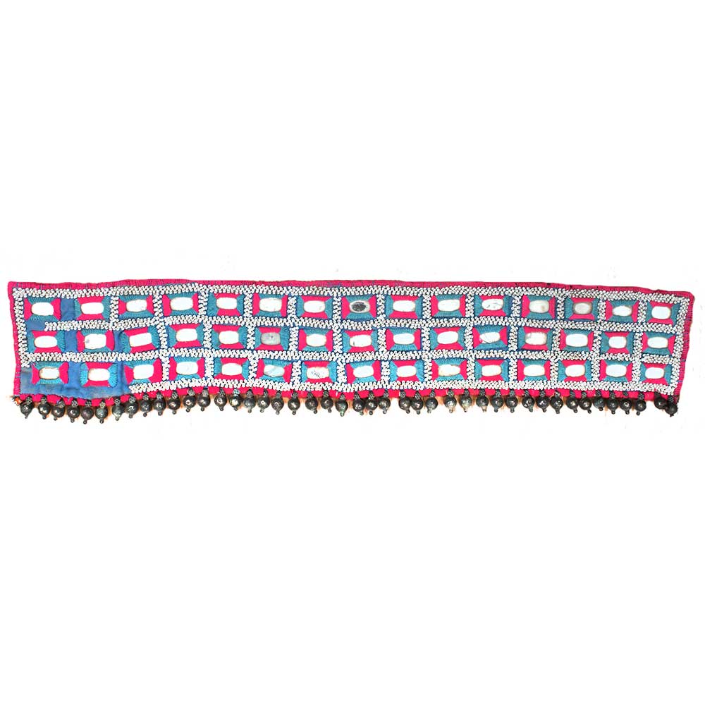 Handcrafted mirrored work kutch hand embroidery toran hanging made of different fabrics, beads, mirrors, shells, bells, and tassels. It is a fantastic adornment for your home's entrance. The Kutch Embroidery is a textile characteristic art form of the tribal population of Gujarat's Kutch area. With its intricate motifs, this needlework has made an important addition to Indian needlework heritage. Embroidery is typically performed by women on cotton fabrics in the form of a net with cotton or silk thread.