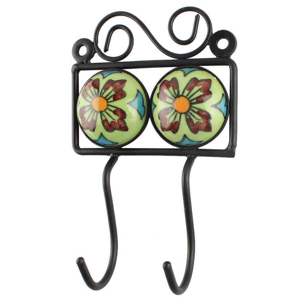 Mix Ceramic Floral Tile Hook. When Put on Wall or Cabinet It is An Art in Itself. The Metal Part of this Hook is Black Powder Coated.