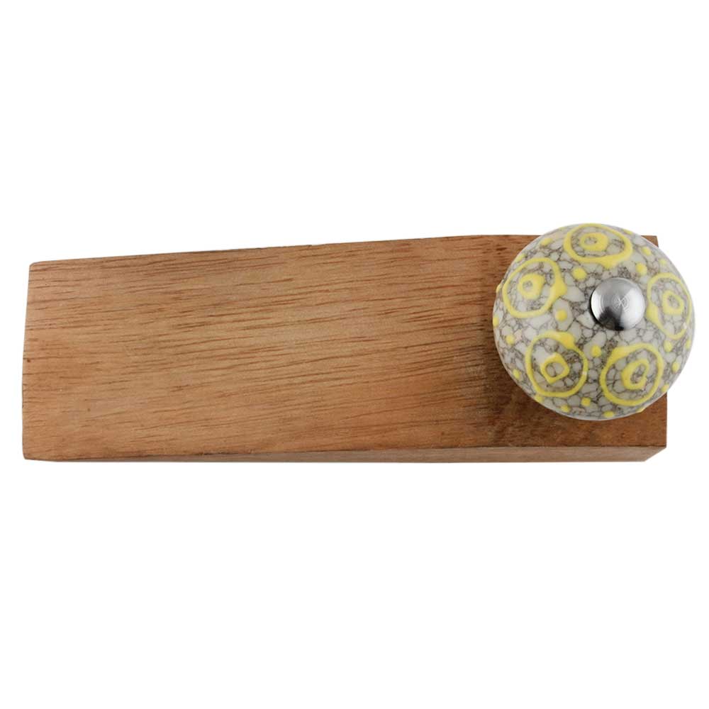 Handmade Ceramic and Wooden Door Stopper.Wooden Door Stopper with a Ceramic Knob to Carry it Easily. This Wooden Door Stopper has Glue Dots under it to Ensure that it does not Slip. It is Handmade by the Craftsmen of India and this Innovative Door Stopper won't Disappoint You.