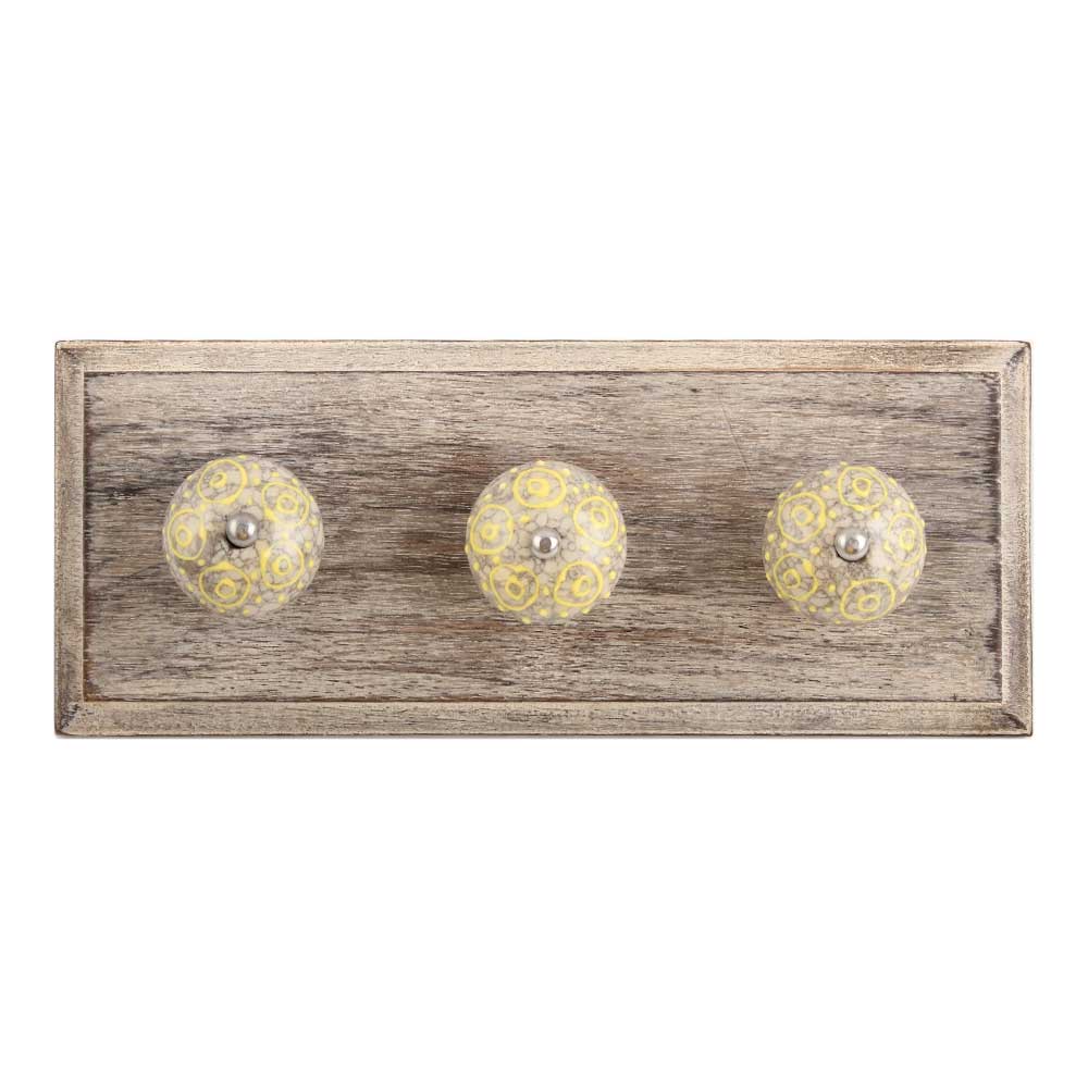 Mixed Circular Crackle Ceramic Wooden Hook. A Perfect Complement to the Soft Tone of the Wood are these White Traditional Hat and Coat Hook Made of Genuine Porcelain and Brass. It can be used to Hang Jewelry, Leashes, Towels, Scarves, Light Weight Sweaters, Caps etc.