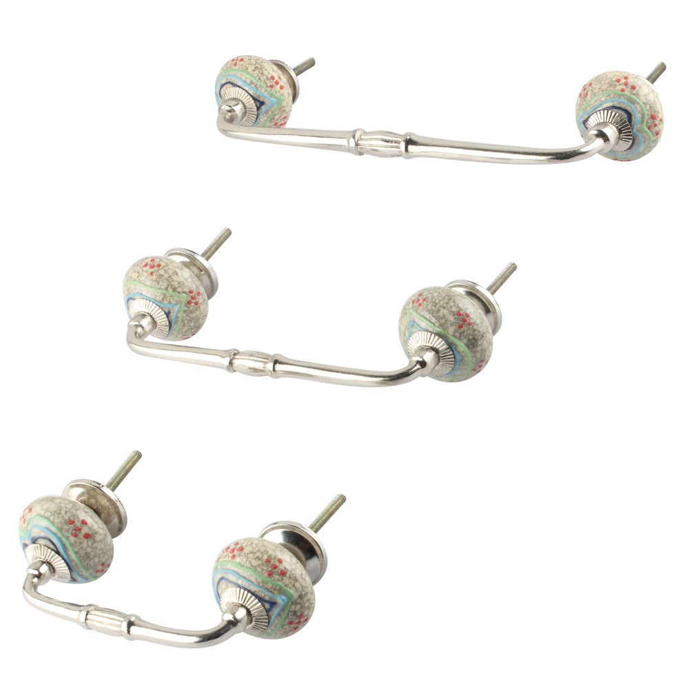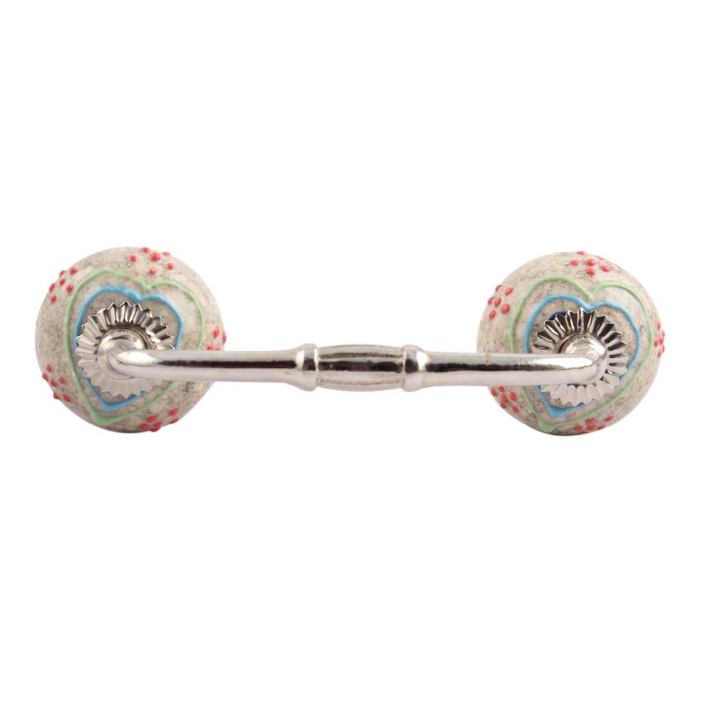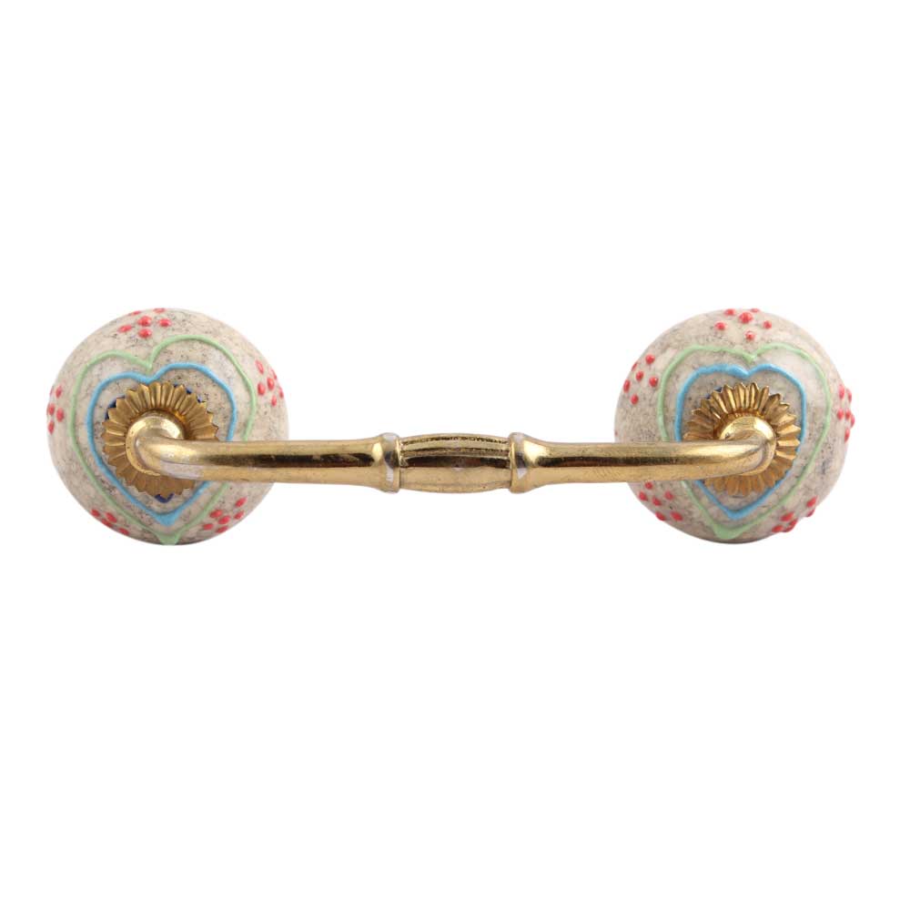 Mixed Color Heart Crackle Ceramic Bridge Handle. Ideal for Drawer, Dresser, Cabinet, Wardrobe, Cupboard and Almirah.
