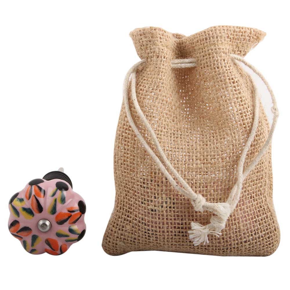 Mixed color leaf ceramic Wine Stopper.zinc alloy wine bottle stopper with attractive Jute Bag Packaging.
