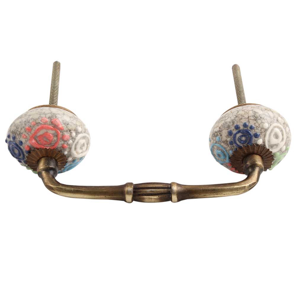 Mixed Crackle Ceramic Bridge Handle. Ideal for Drawer, Dresser, Cabinet, Wardrobe, Cupboard and Almirah.