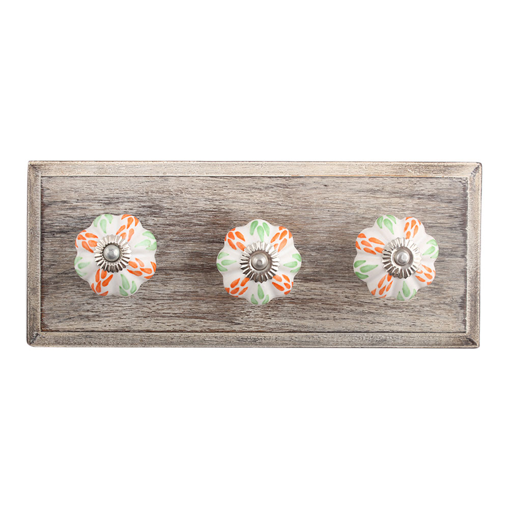 Mixed Leaf Ceramic Wooden Hook. A Perfect Complement to the Soft Tone of the Wood are these White Traditional Hat &Amp; Coat Hook Made of Genuine Porcelain and Brass. It can be use to Hang Jewellery, Leashes, Towels, Scarves, Light Weight Sweaters, Caps Etc.