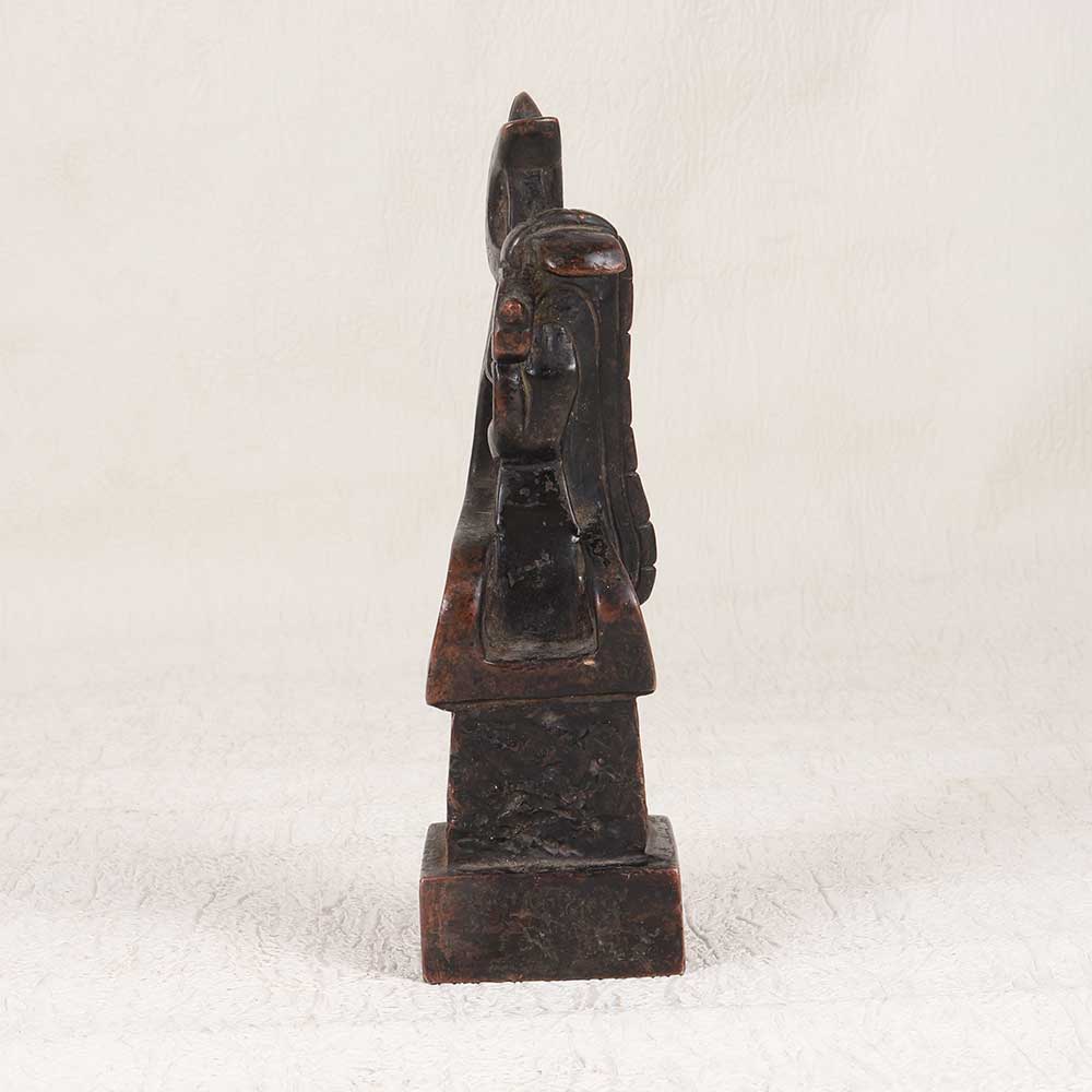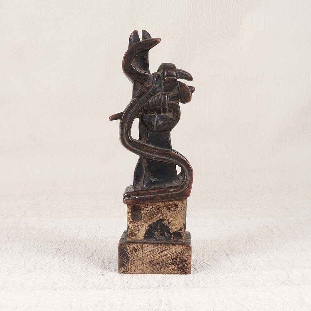 Immerse yourself in minimalist beauty with this abstract bronze modern art piece. This vintage sculpture combines sleek, contemporary design with the rich patina of weathered bronze. With its smooth, fluid lines, this sculpture brings a refined, cultured ambiance to your space. The muted bronze patina adds warmth and character, letting the abstract shapes take center stage. Elegant yet approachable, this bronze artwork makes a sophisticated statement in any home. Whether you're an art lover, design enthusiast, or lover of all things minimalist, this vintage bronze sculpture belongs in your home. Make a subtle but powerful impact with this abstract modern art piece. Let its understated beauty enrich your space.