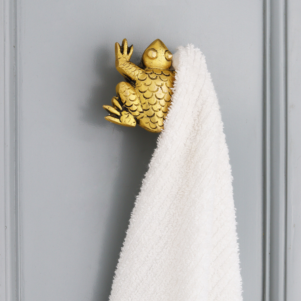 Add a touch of charm and luxury to your walls with the Modern Brass Golden Frog Wall Hook. Meticulously handcrafted from pure brass, this wall hook features a detailed frog design in a gleaming golden finish. It's more than just a hook—it's a statement piece that brings playful energy and refined design into your home. Whether you're decorating a hallway, bathroom, or kids' room, this frog-shaped wall hook adds personality while keeping your space organized.