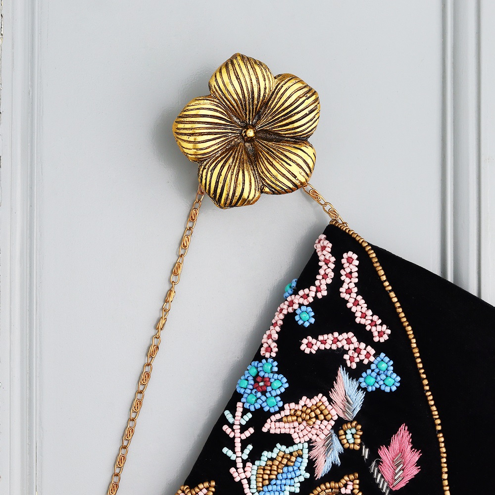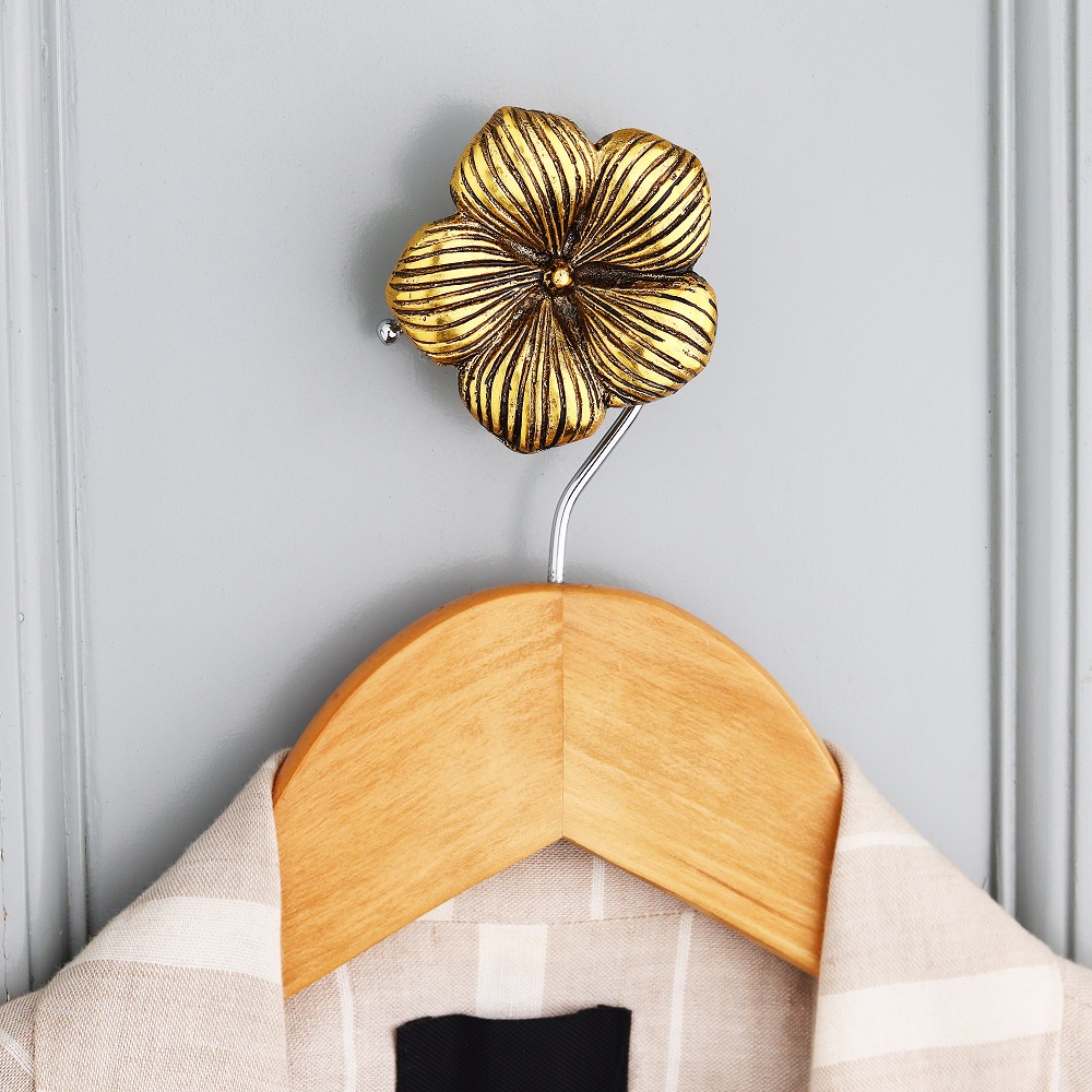 Bring home a graceful blend of art and function with the Modern Flower Aluminum Wall Hook in Golden Finish. Expertly cast in durable aluminium, this beautifully crafted wall hook features a flower motif in a polished golden hue—perfect for adding a soft yet striking accent to your walls. Whether you're organizing your essentials or simply enhancing your space, this floral hook makes everyday utility feel effortlessly elegant.