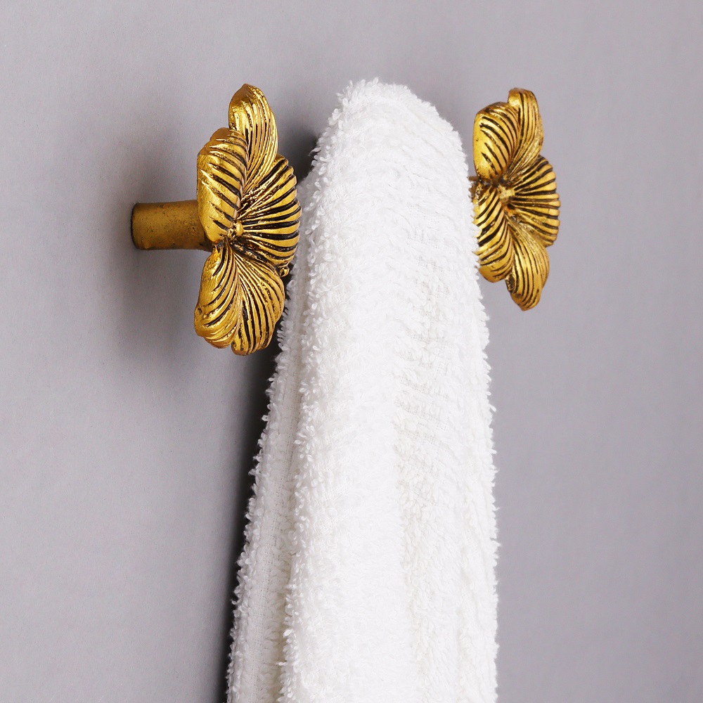 Golden Modern Flower Aluminum Wall Hooks 3 Pieces. This Hook is Strong Enough to Hold Your Bags, Hand Towels, Cloths Etc.