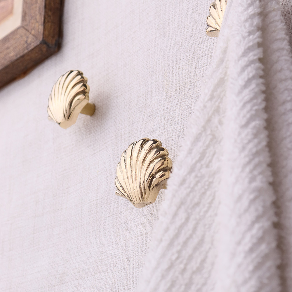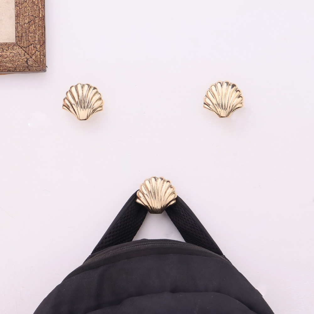 Solid Golden Shell Brass Wall Hooks-Pack of 3. This Hook is Strong Enough to Hold Your Cloths, Keys, Tea Cups, Coffee Mugs, Hand Towels Etc.