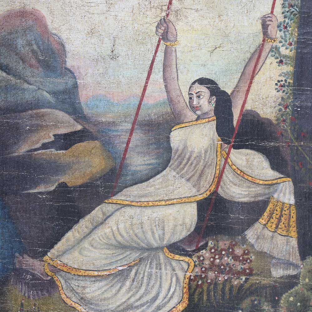Ravi Varma Press's Mohini is Vishnu's feminine form and is the ideal of beauty and appeal. Nothing will be able to stop her, and no one will be able to resist her allure. Vishnu assumes the shape of Mohini and dupes the asuras into giving up the amrita (immortal nectar) before turning it over to the Devas.