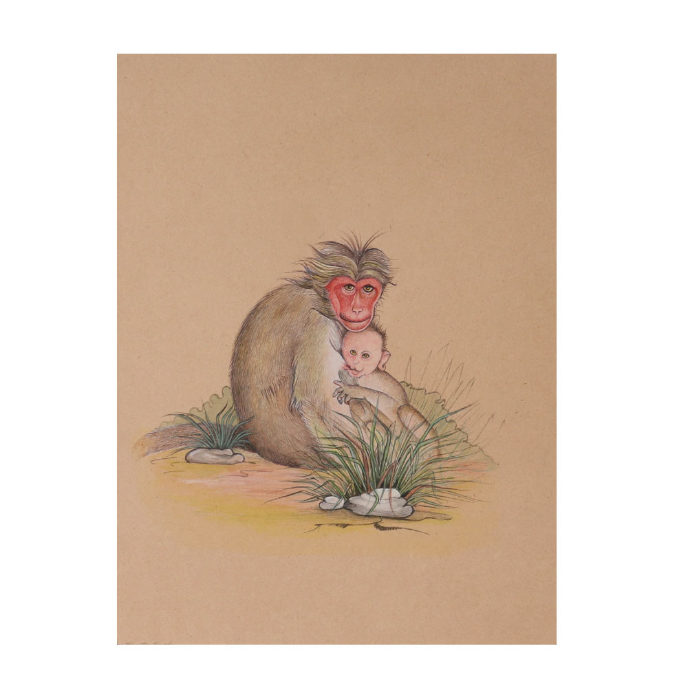 Original watercolor Mom and Baby Monkey painting. The Mother and Baby animal painting makes the ideal monkey gift for a new mother or the ideal safari nursery decor. The safari baby room decor has gender-neutral color schemes, making it suitable for either a boy or girl nursery. The mother monkey's body hair was the most crucial detail to paint in this picture. There are no hairs on the body of the newborn. We can see the skin on top of it, which is likewise painted with a variety of colors like yellow, white, and black. Ideal gift for animal lovers.