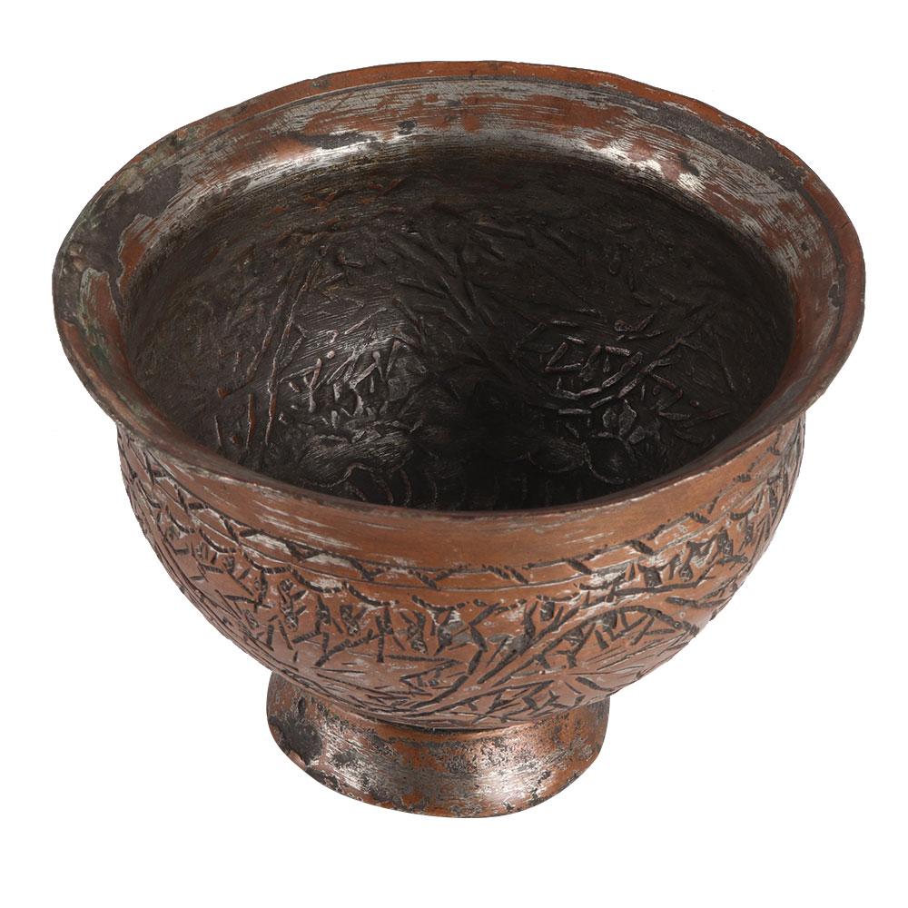 Exceptional Qajar period Persian copper bowl. The surface is carved with a Persian design. A rare and valuable home decoration item. Gift it to your near and dear ones on special occasions.