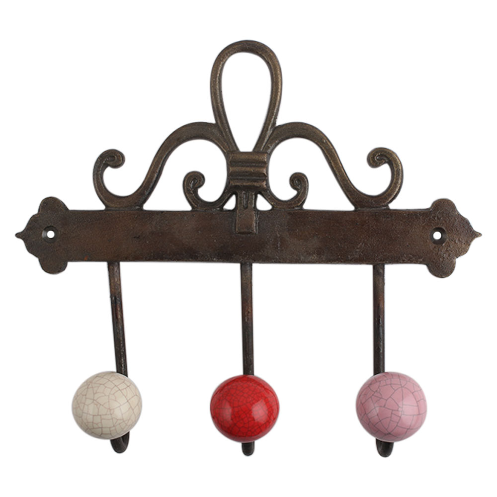 Multi Crackle Ceramic Iron Hook. A Perfect Complement to the Soft Tone of the Wood are these White Traditional Hat & Coat Hook Made of Genuine Porcelain and Brass. It can be use to Hang Jewellery, Leashes, Towels, Scarves, Light Weight Sweaters, Caps Etc.
