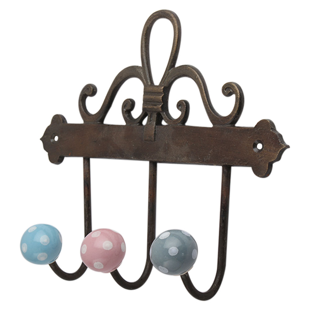 Multi Dot Ceramic Iron Hook. A Perfect Complement to the Soft Tone of the Wood are these White Traditional Hat & Coat Hook Made of Genuine Porcelain and Brass. It can be use to Hang Jewellery, Leashes, Towels, Scarves, Light Weight Sweaters, Caps Etc.