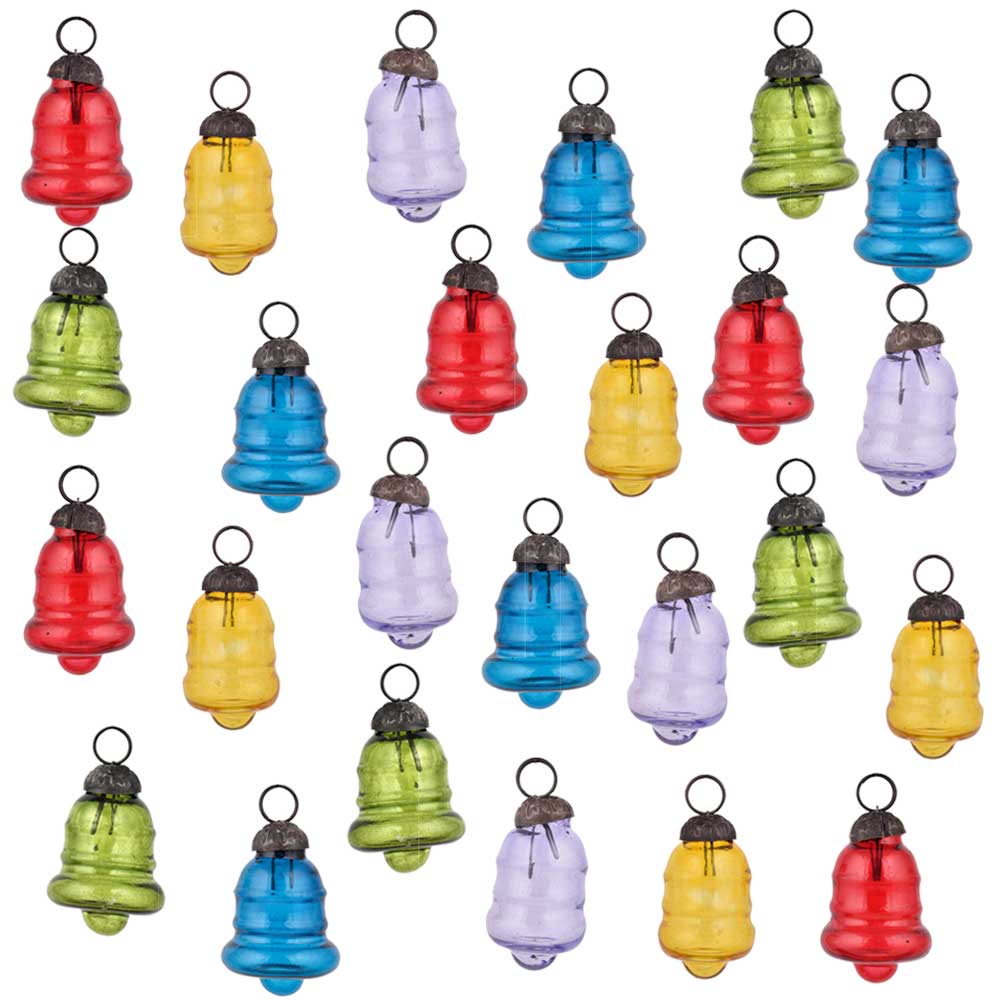 Multic-Color Bell Combo Glass Tiny Christmas Hanging Set of 25