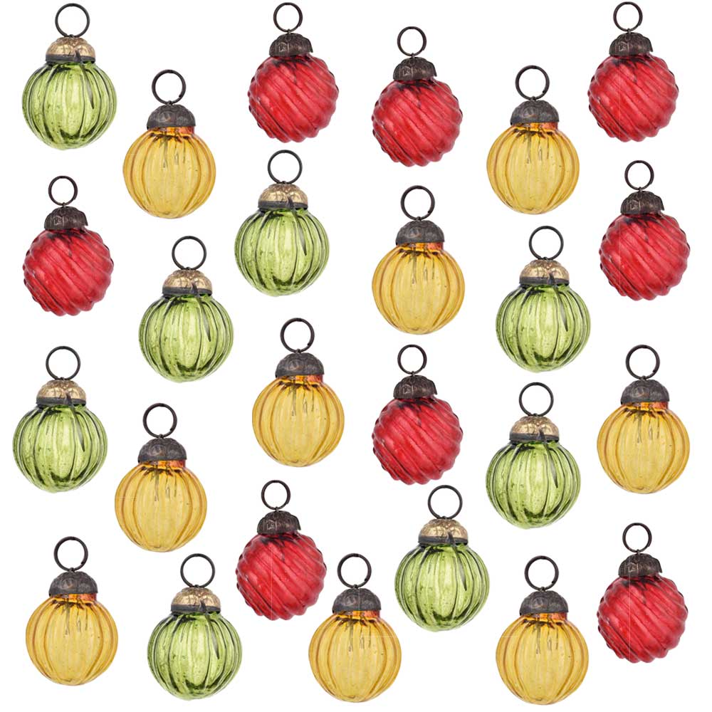Multic-Color Round Combo Glass Tiny Christmas Hanging Set of 25