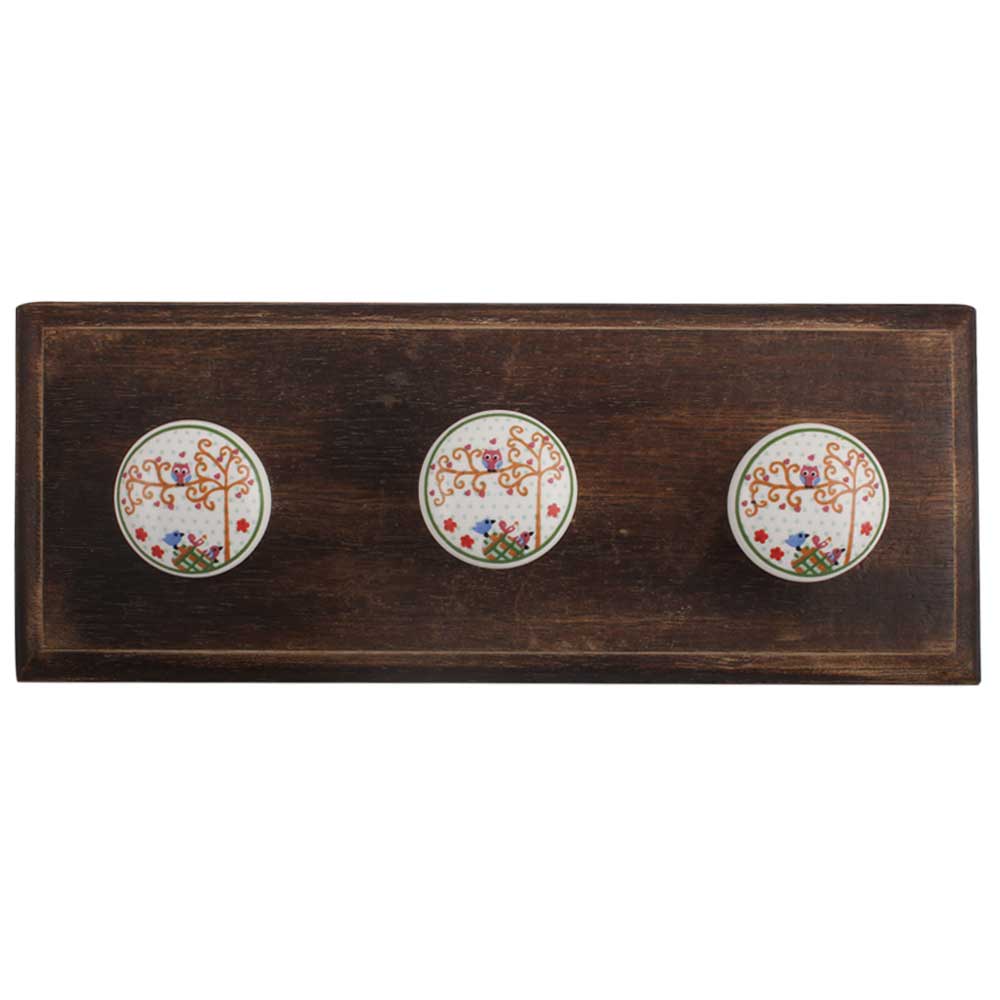 Multicolor Birds Ceramic Flat Wooden Hook. A Perfect Complement to the Soft Tone of the Wood are these White Traditional Hat & Coat Hook Made of Genuine Porcelain and Brass. It can be use to Hang Jewellery, Leashes, Towels, Scarves, Light Weight Sweaters, Caps Etc.