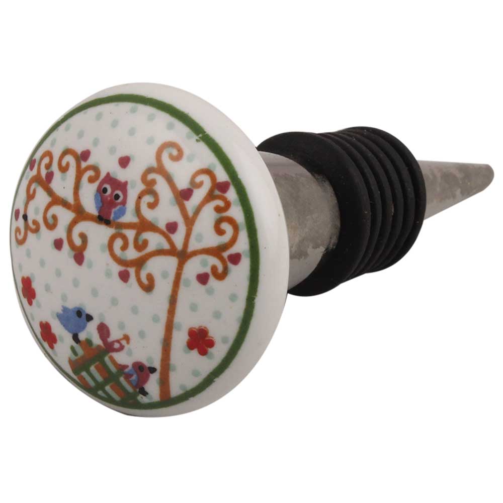 Multicolor Birds Flat Ceramic Wine Stopper.zinc alloy wine bottle stopper with attractive Jute Bag Packaging.