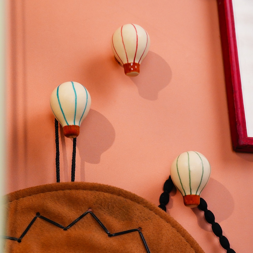 Multicolor Ceramic Hot Balloon Modern Kids Wall Hook-3 Pieces. This Hook is Strong Enough to Hold Your Cloths, Keys, Tea Cups, Coffee Mugs, Hand Towels Etc.