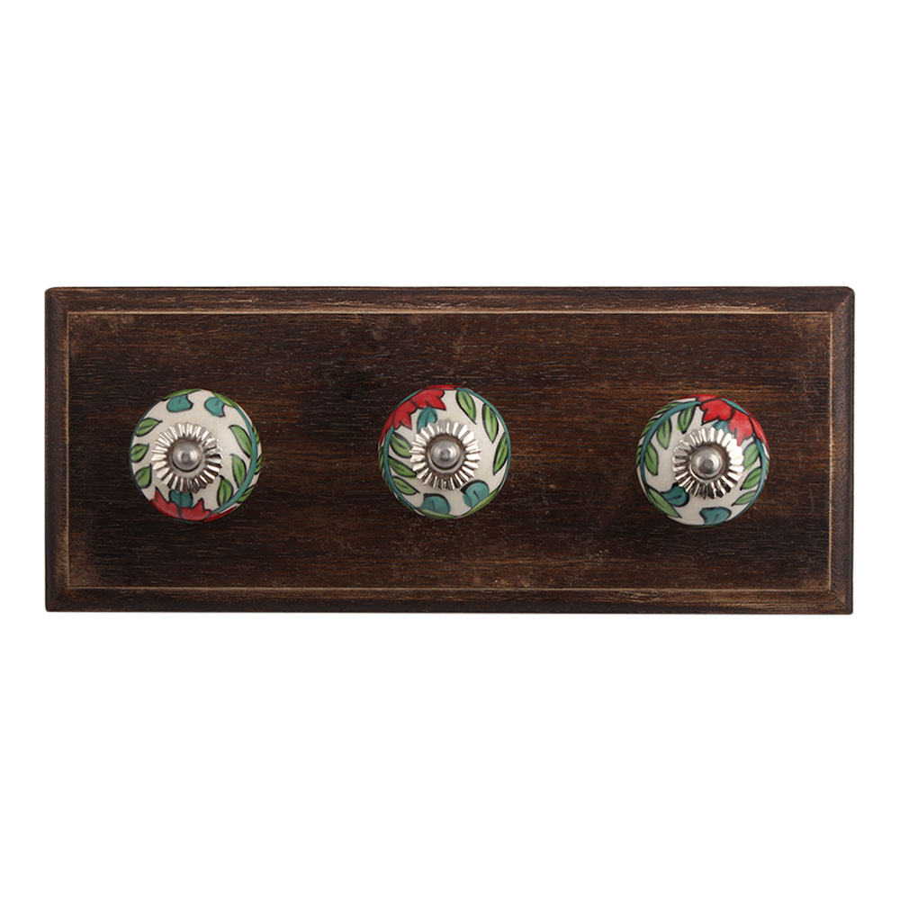 Multicolor Ceramic Wooden Hook. A Perfect Complement to the Soft Tone of the Wood are these White Traditional Hat &Amp; Coat Hook Made of Genuine Porcelain and Brass. It can be use to Hang Jewellery, Leashes, Towels, Scarves, Light Weight Sweaters, Caps Etc.