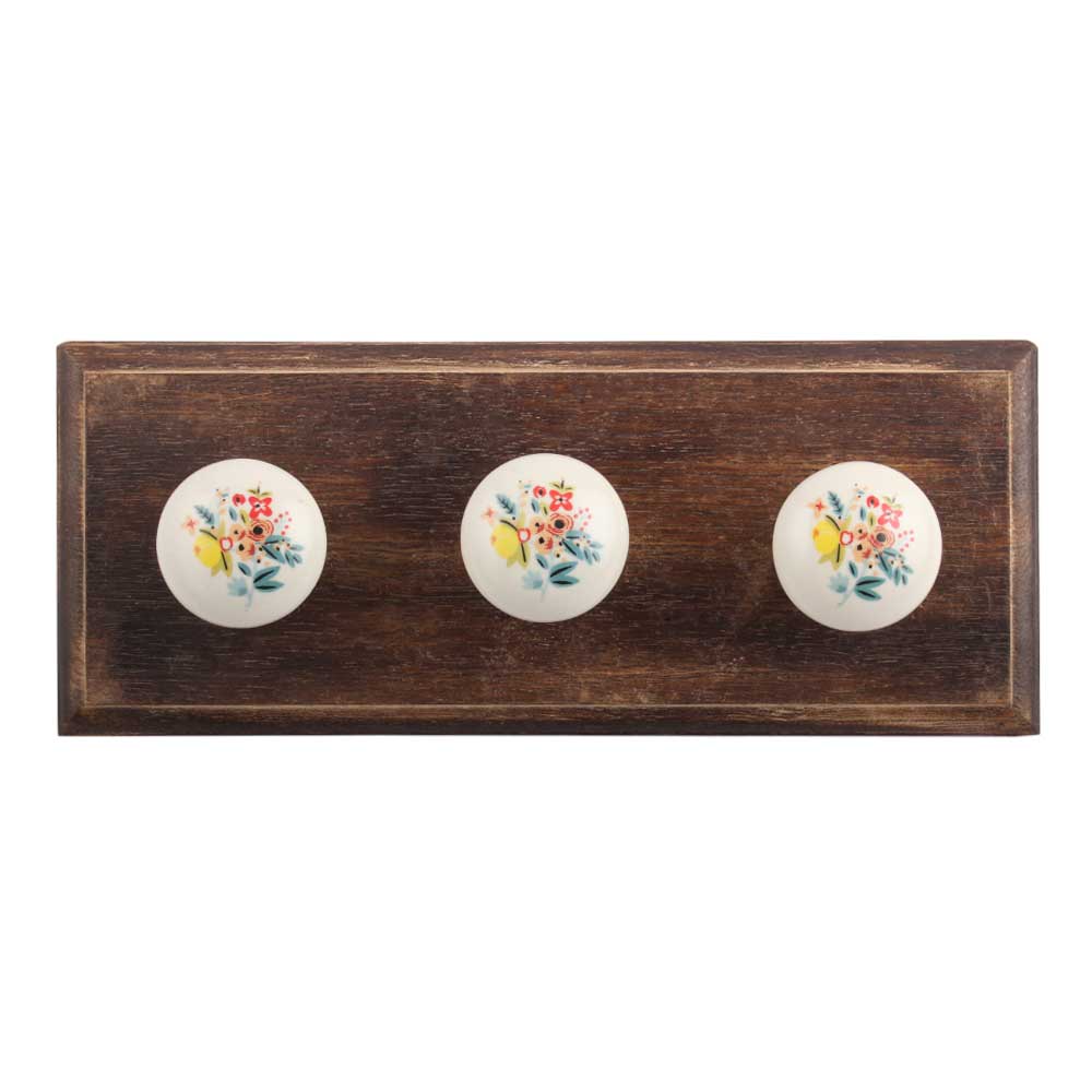 Multicolor Cream Base Ceramic Wooden Hook. A Perfect Complement to the Soft Tone of the Wood are these White Traditional Hat &Amp; Coat Hook Made of Genuine Porcelain and Brass. It can be use to Hang Jewellery, Leashes, Towels, Scarves, Light Weight Sweaters, Caps Etc.