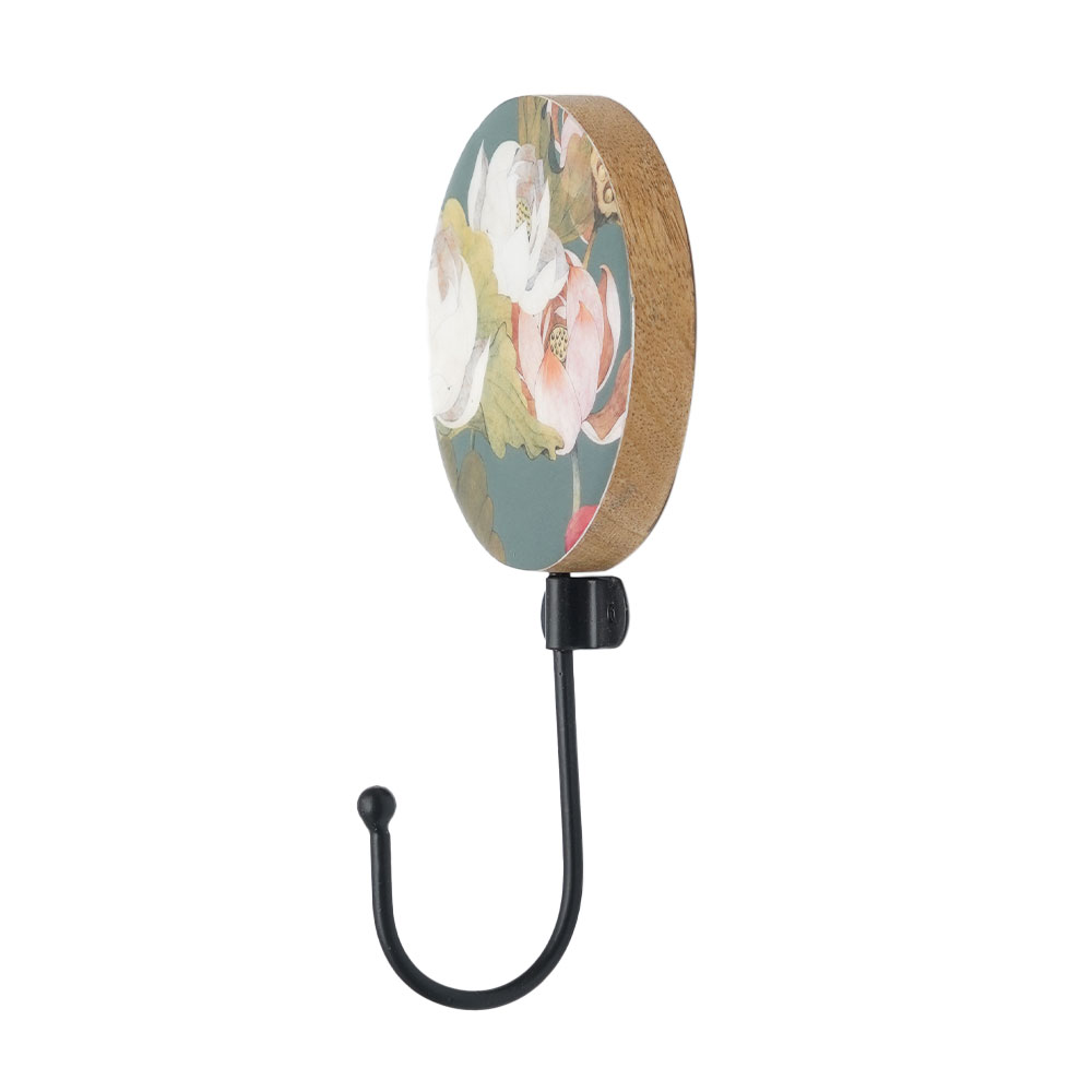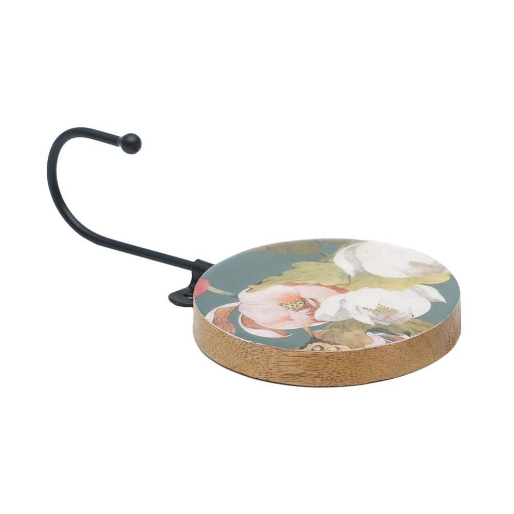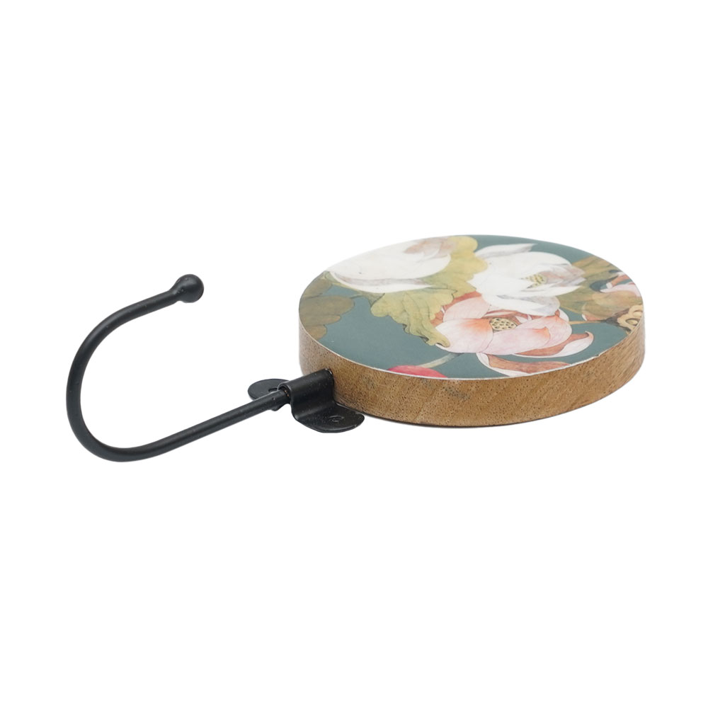Introducing our exquisite wall hook, a stunning blend of modern design and traditional craftsmanship. Handmade by skilled Indian craftsmen, this unique piece features a perfect combination of resin and wood, beautifully engraved with lovely colourful flowers on wood, and adorned with a sleek black finish resin hook. This wall hook is not just functional, but also adds a touch of elegance to any space. With its eye-catching design, this wall hook serves as both a practical solution for organizing your coats, hats, or towels, and a decorative accent for your home or bathroom. The high-quality materials used in its construction ensure durability and longevity, making it a reliable addition to your space. Whether you hang it in your entryway, bedroom, bathroom, or hallway, it is sure to become a conversation starter. This wall hook also makes for a thoughtful gift on special or festive occasions, adding a touch of Indian craftsmanship and charm to your loved one's home