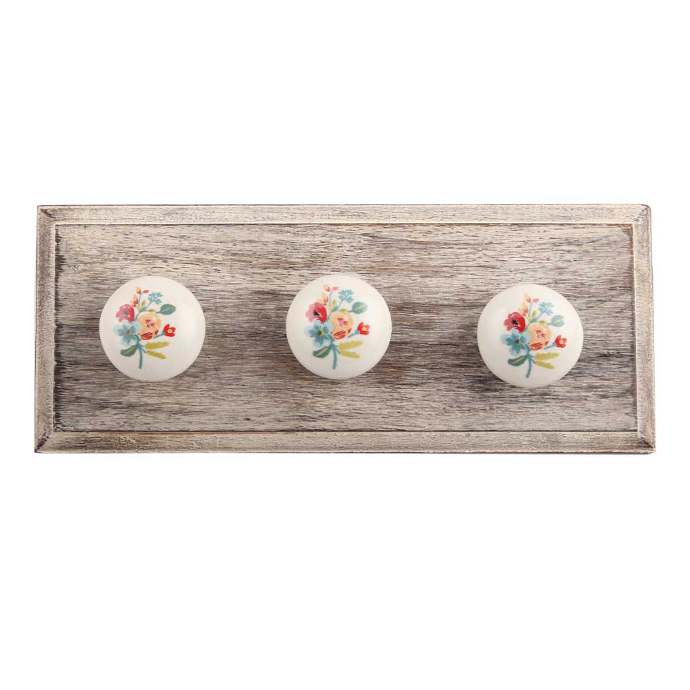 Multicolor Flower Ceramic Wooden Hook. A Perfect Complement to the Soft Tone of the Wood are these White Traditional Hat &Amp; Coat Hook Made of Genuine Porcelain and Brass. It can be use to Hang Jewellery, Leashes, Towels, Scarves, Light Weight Sweaters, Caps Etc.