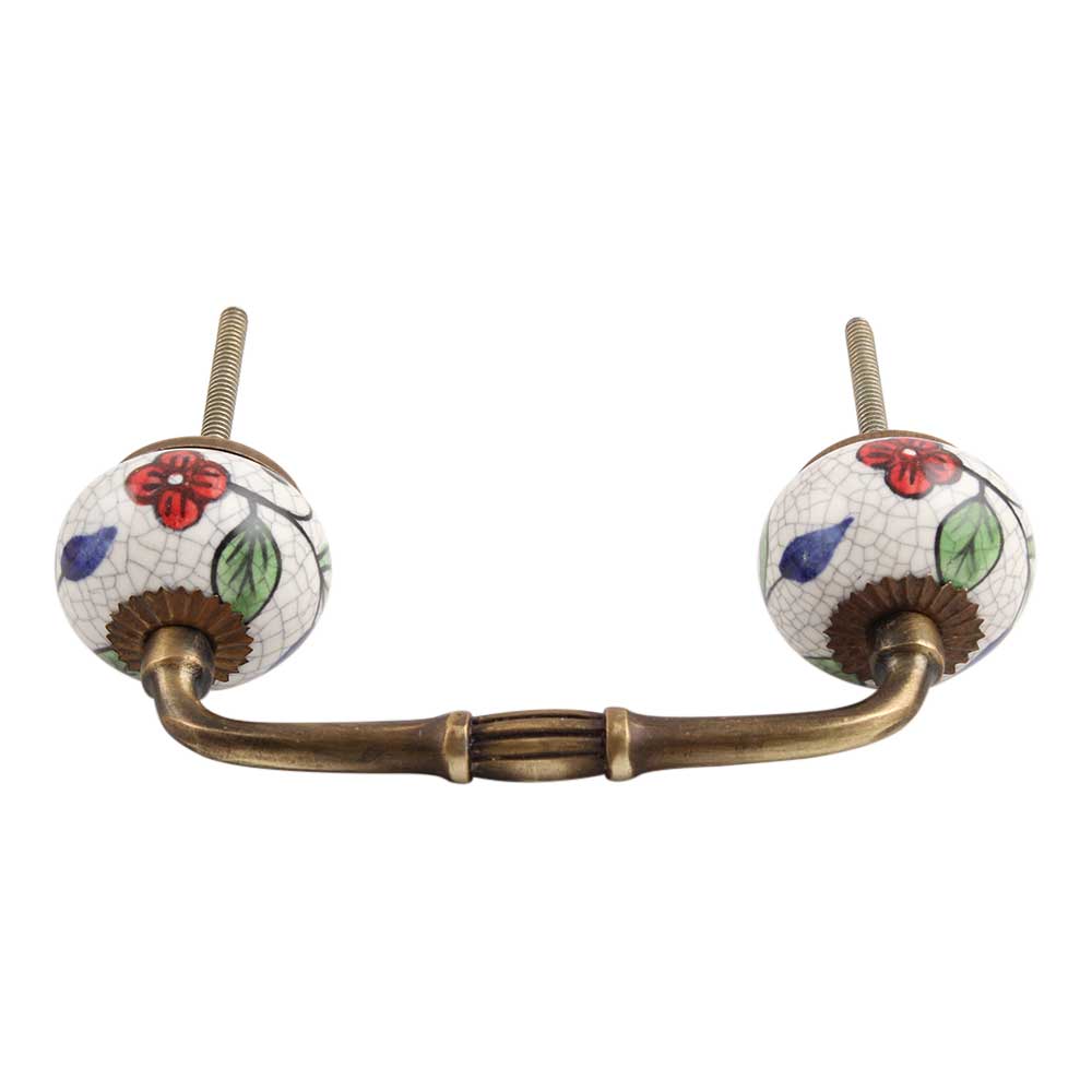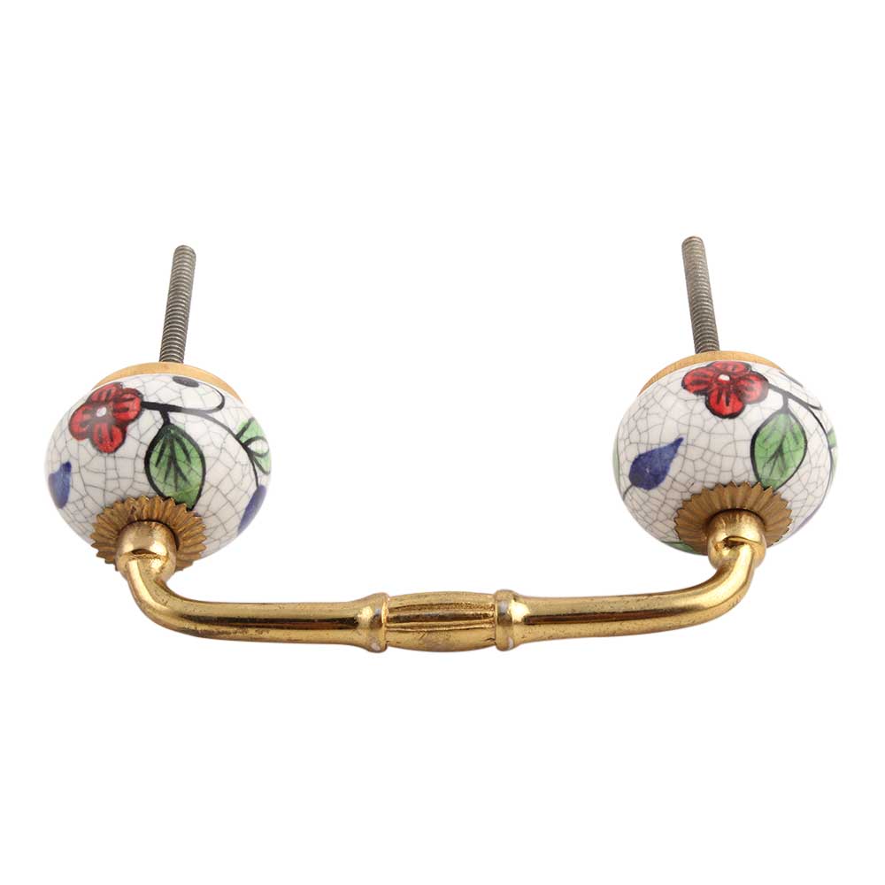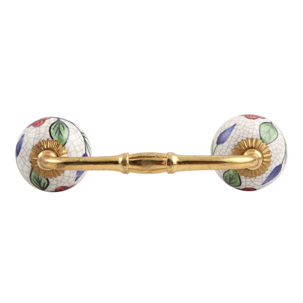 Multicolor Leaves Crackle Ceramic Bridge Handle. Ideal for Drawer, Dresser, Cabinet, Wardrobe, Cupboard and Almirah.