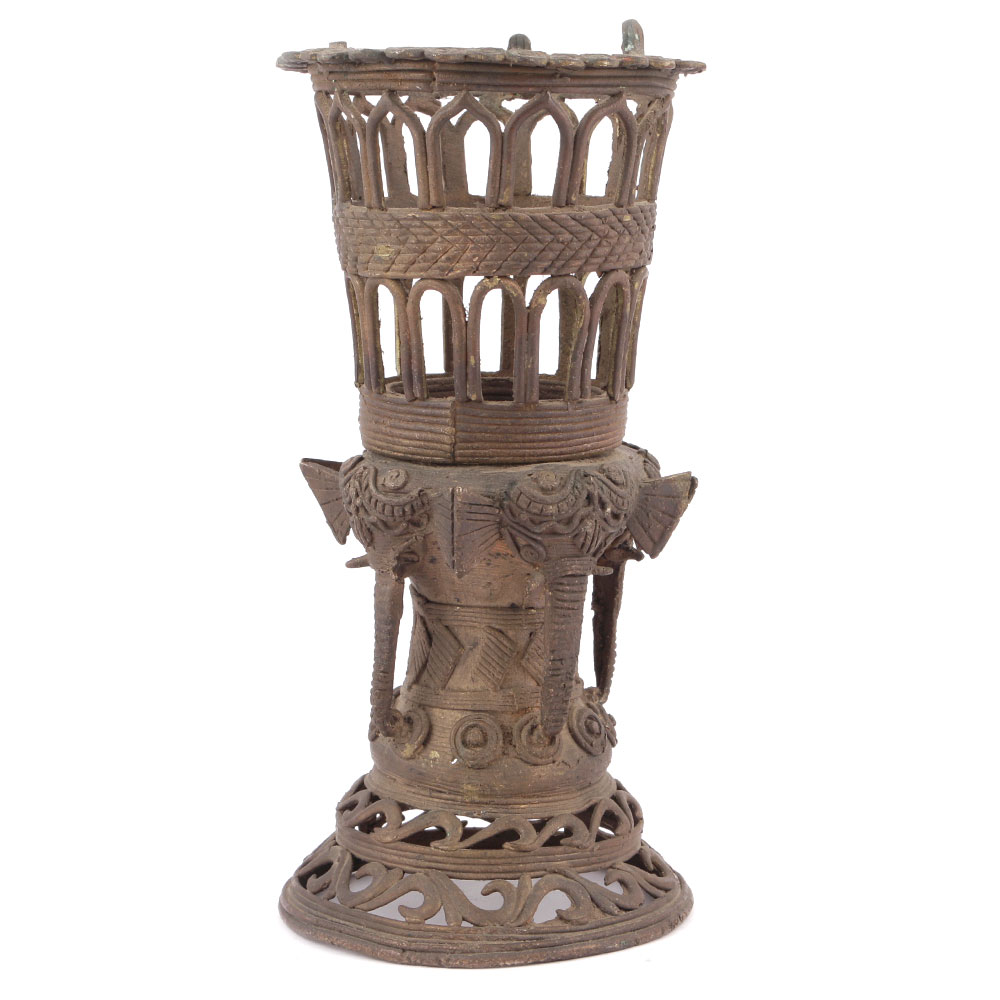 Brass Elephant Dokra Long Brass Pot is Handmade Using the Lost Wax Process and Casted Into Decorative Mould with Elephant Figurine and Used to Keep Planters and Kept in the Interiors of Your Home and Also An Excellent Gifting Option.