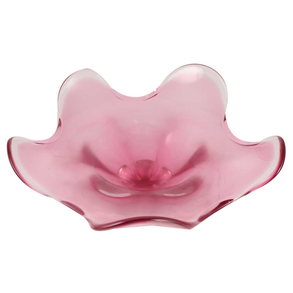 Abstract Pink glass bowl from the mid-century period is the ideal gfit for your friends and family. The floral, flower-shaped peel in bright pink is the ideal sideboard companion. It's ideal as a candy or condiment dish.
