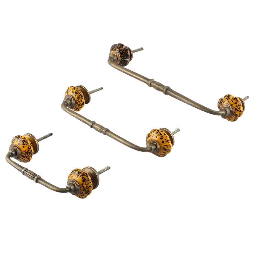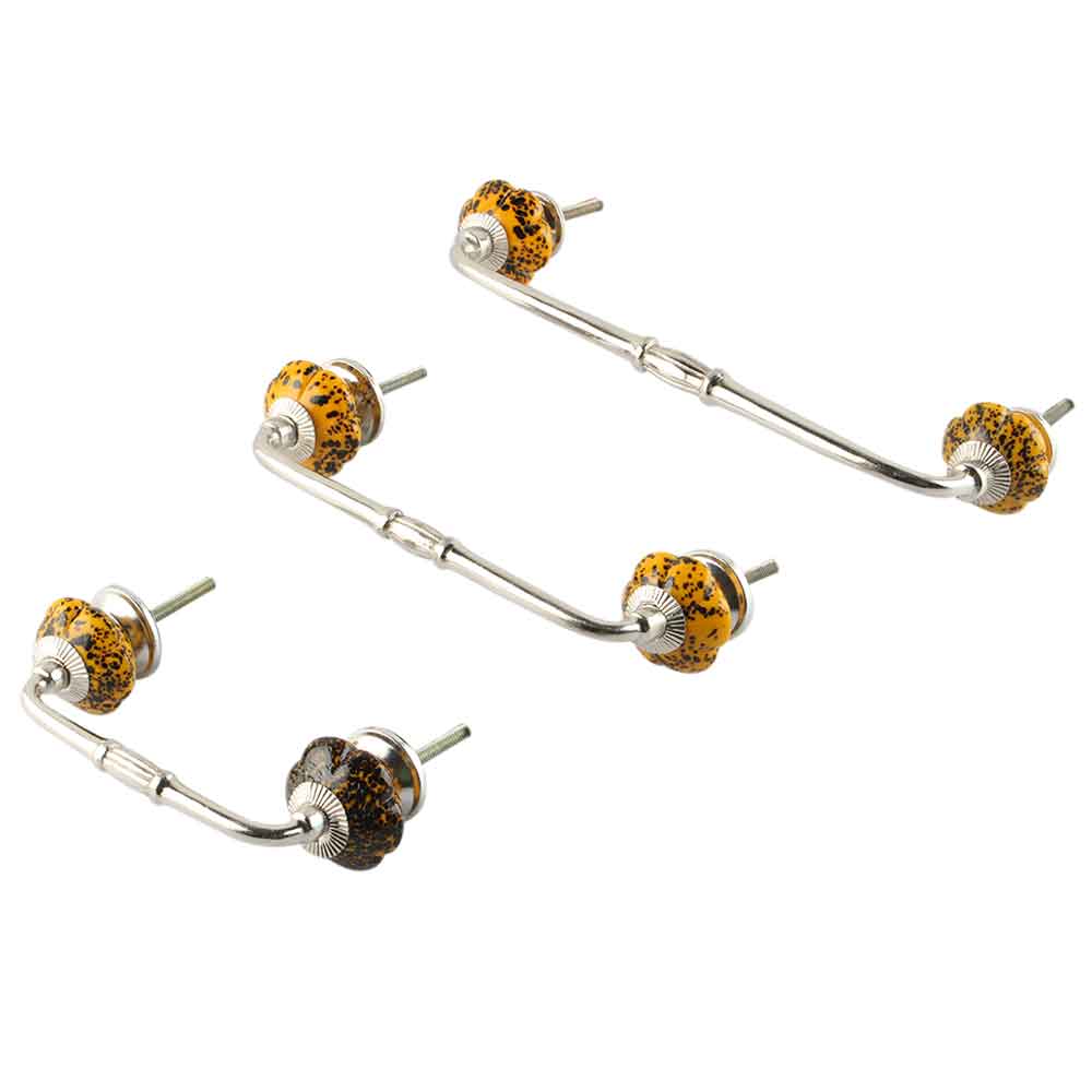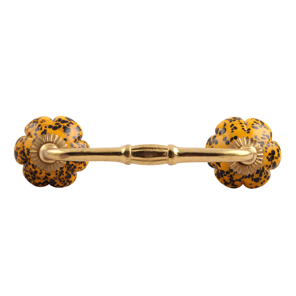 Mustard and Black Melon Glass Bridge Handle. Ideal for Drawer, Dresser, Cabinet, Wardrobe, Cupboard and Almirah.