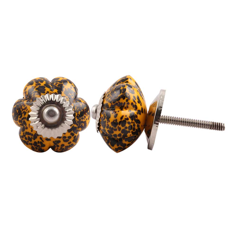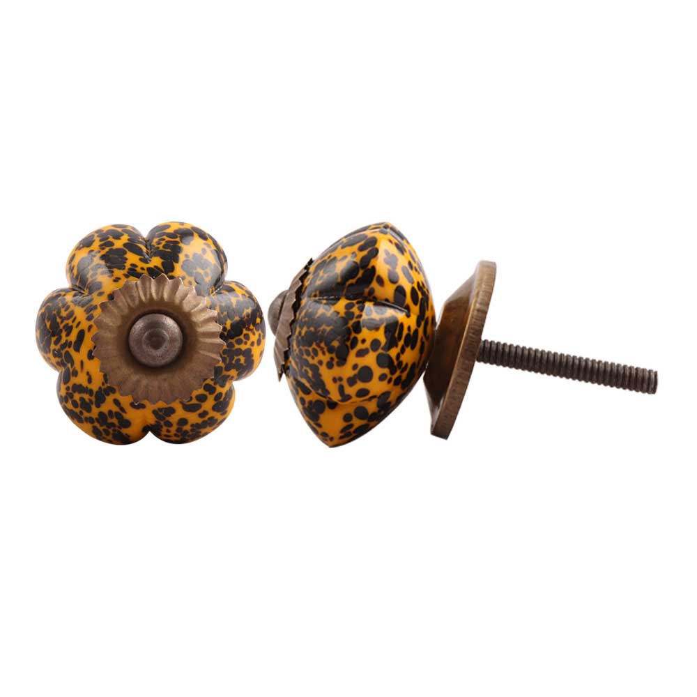 Mustard and Black Melon Glass Knobs. Ideal for Drawer, Dresser, Cabinet, Wardrobe, Cupboard and Almirah.