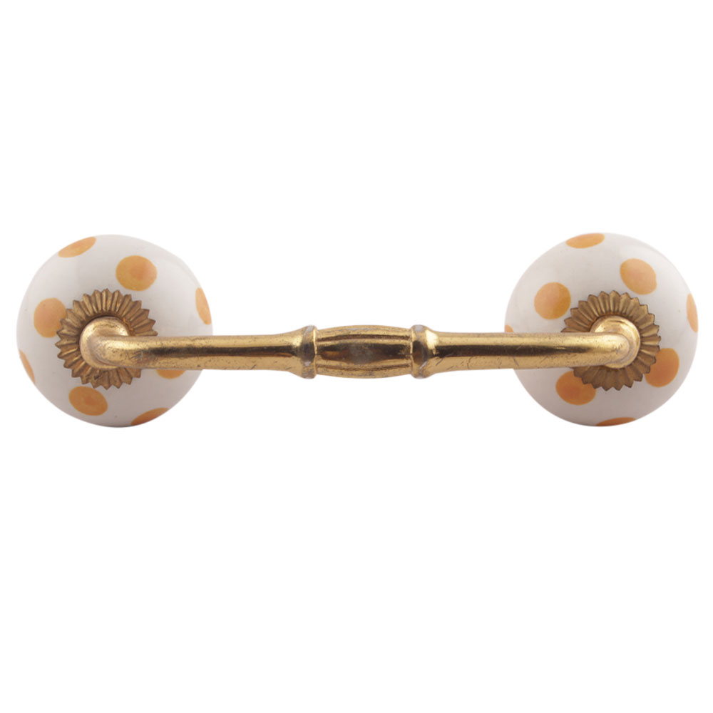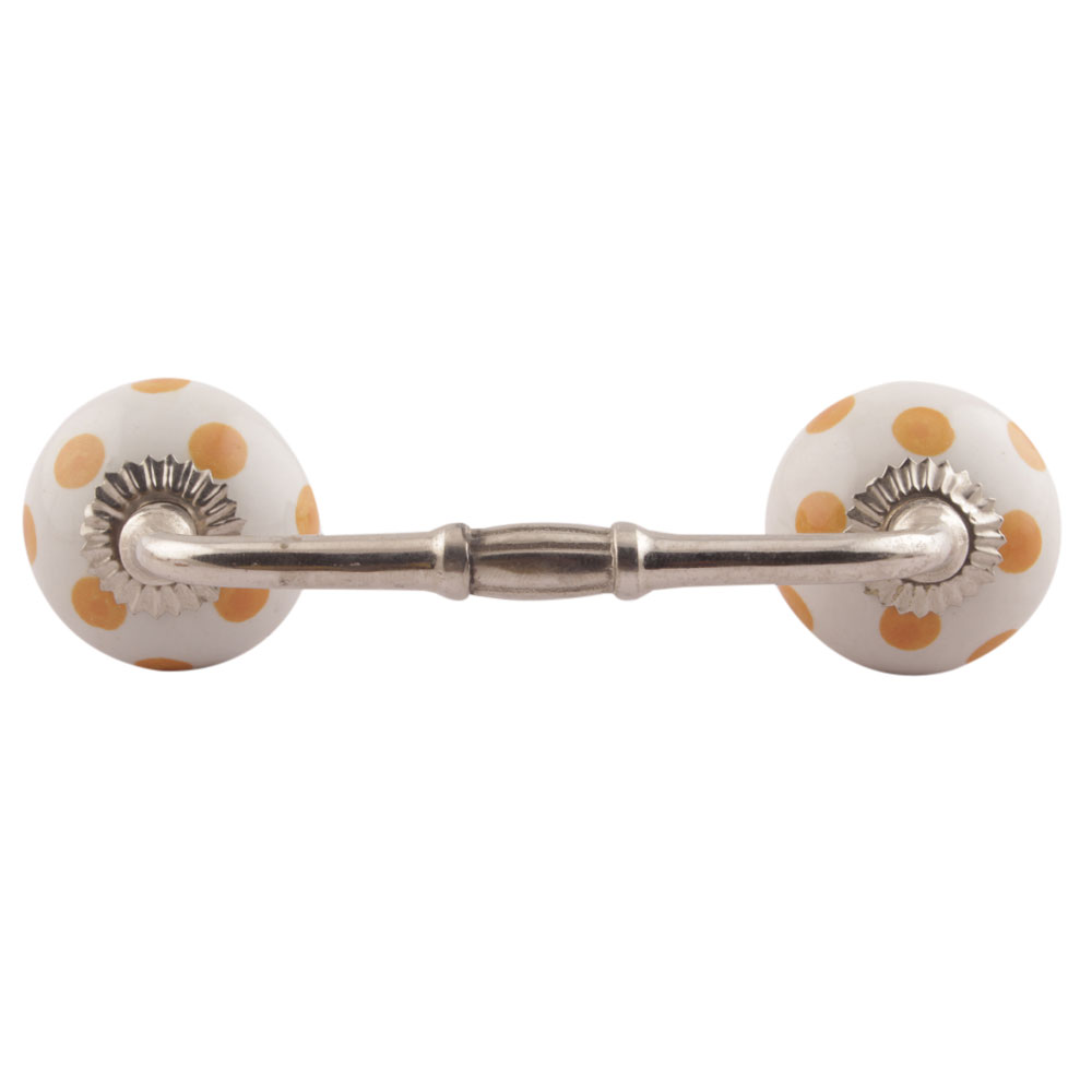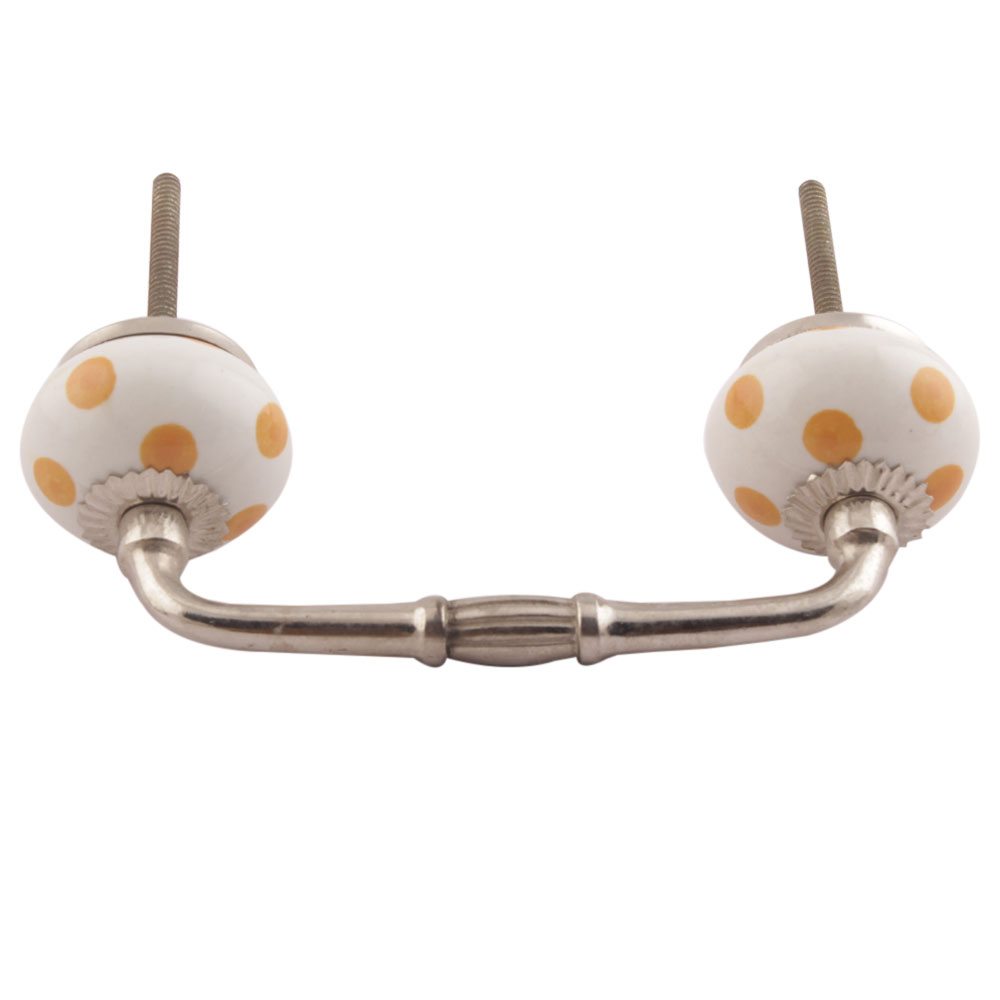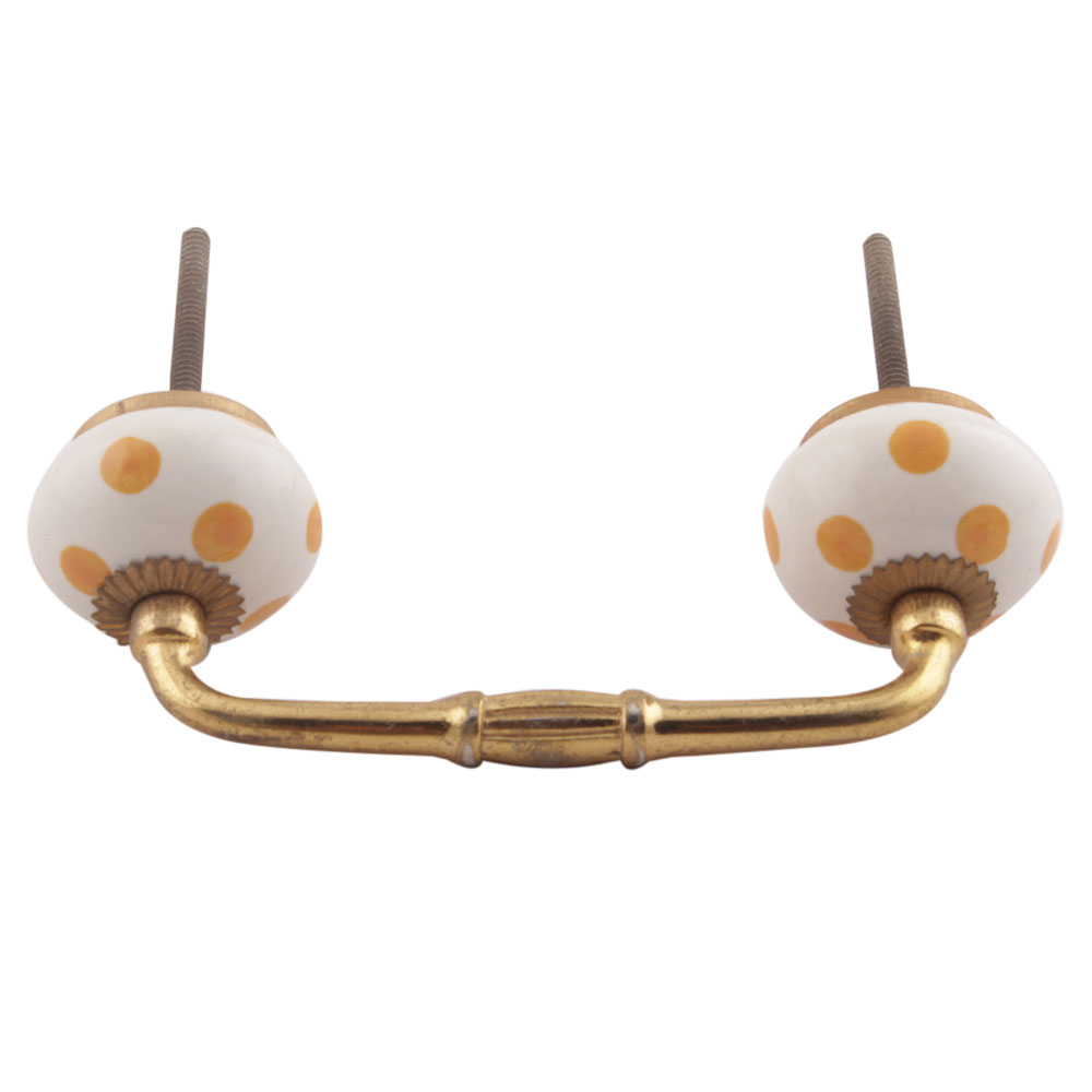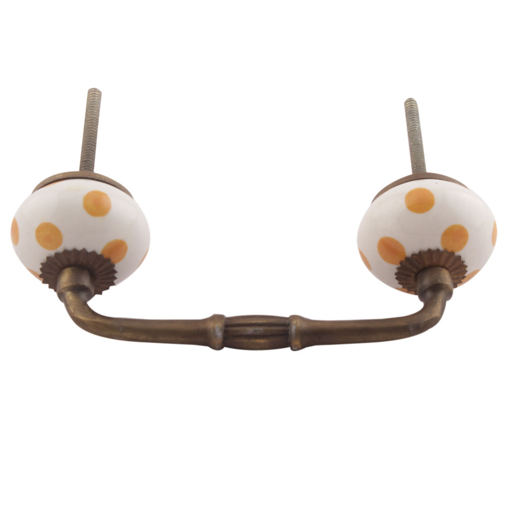 Mustard Dotted Ceramic Floral Bridge Handles. Ideal for Drawer, Dresser, Cabinet, Wardrobe, Cupboard and Almirah etc.