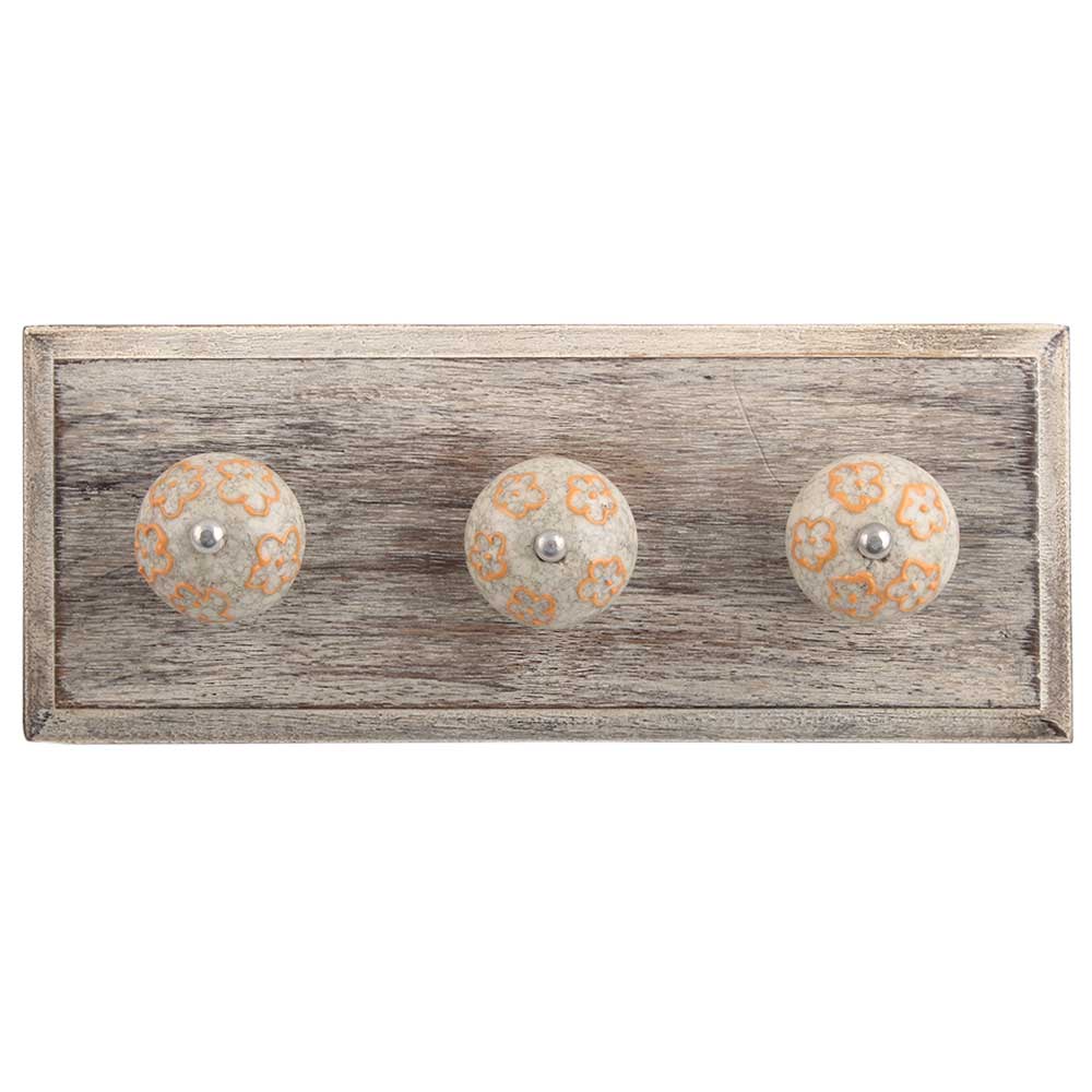 Mustard Floral Crackle Ceramic Wooden Hook. A Perfect Complement to the Soft Tone of the Wood are these White Traditional Hat & Coat Hook Made of Genuine Porcelain and Brass. It can be use to Hang Jewellery, Leashes, Towels, Scarves, Light Weight Sweaters, Caps Etc.