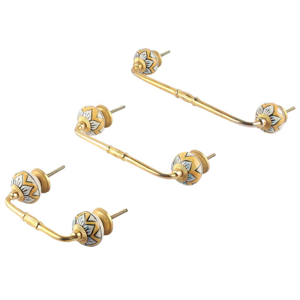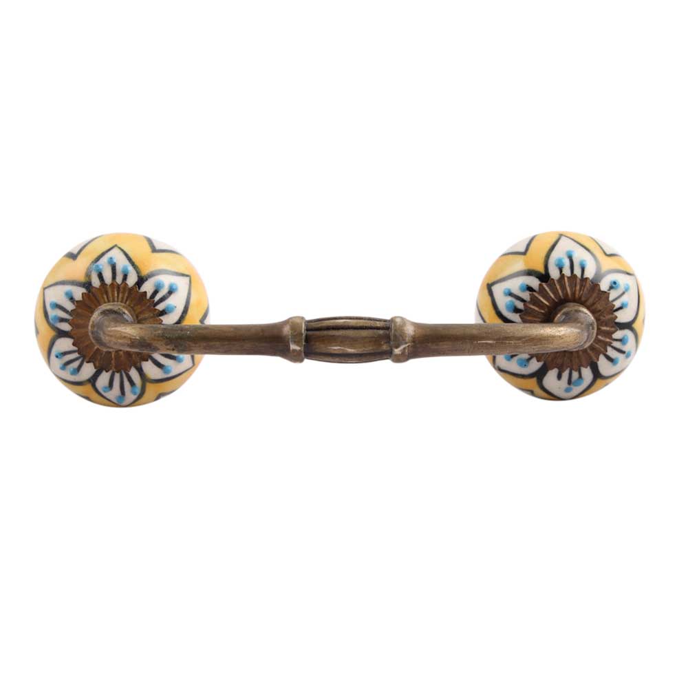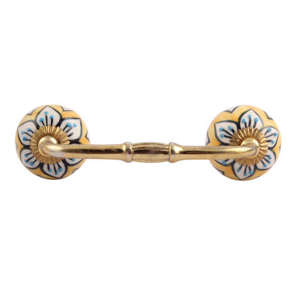 Mustard Flower Ceramic Bridge Handle. Ideal for Drawer, Dresser, Cabinet, Wardrobe, Cupboard and Almirah.