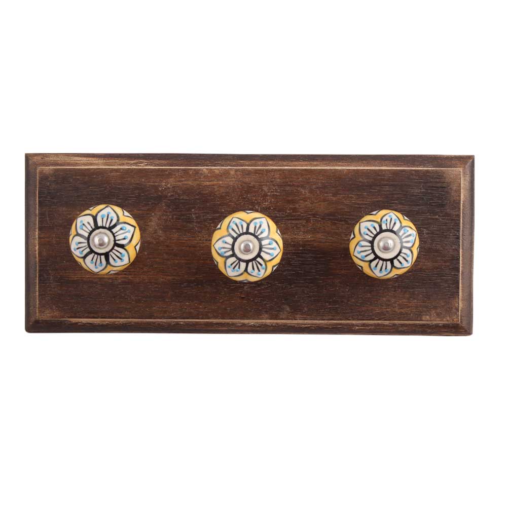 Mustard Flower Ceramic Wooden Hook. A Perfect Complement to the Soft Tone of the Wood are these White Traditional Hat &Amp; Coat Hook Made of Genuine Porcelain and Brass. It can be use to Hang Jewellery, Leashes, Towels, Scarves, Light Weight Sweaters, Caps Etc.