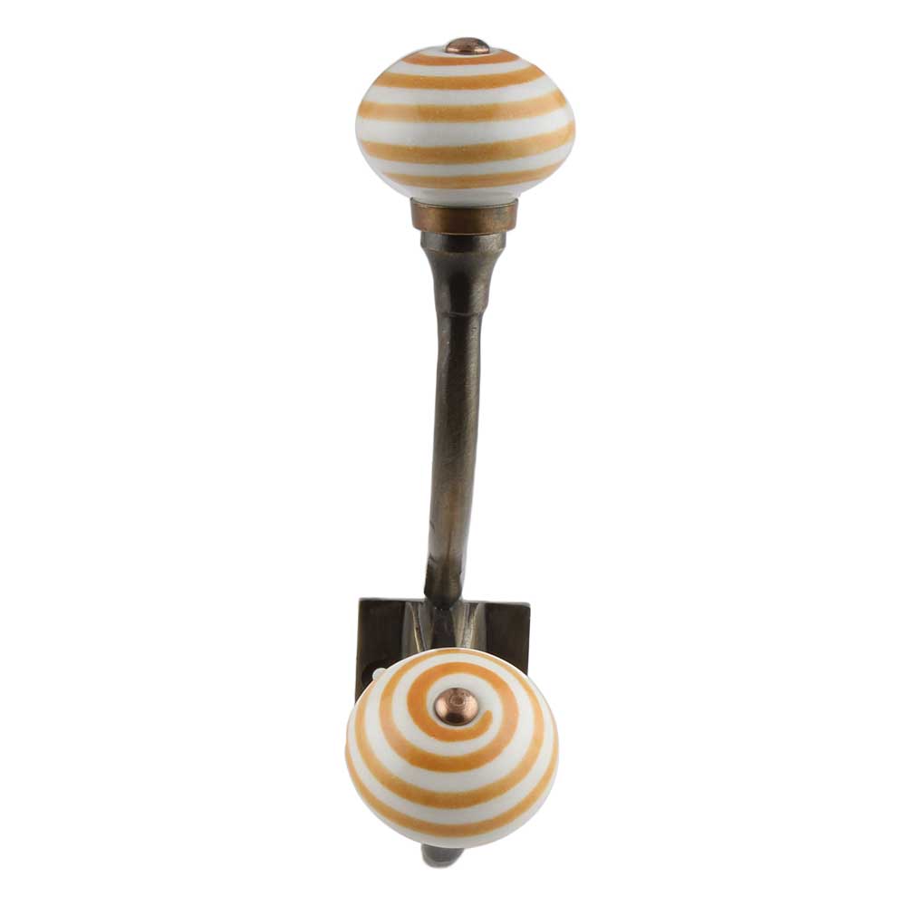 The Mustard Striped Ceramic Antique Iron Hook is where vintage elegance meets warm, modern flair. Handcrafted with a mustard yellow and white striped ceramic knob, this charming wall hook is anchored in a robust antique-finish iron base. Designed to blend artful detail with everyday utility, it adds a splash of color and character to any wall—perfect for those who appreciate subtle accents that stand out without overwhelming their space.