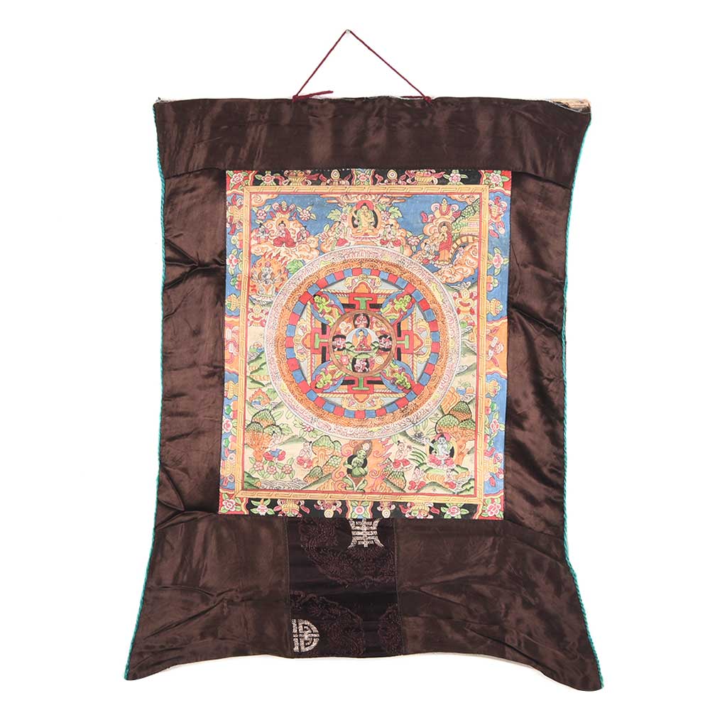 This handmade Shakyamuni Mandala Thangka Painting is a visual aid for concentration and introversive meditation leading to the attainment of insights and to activation of forces culminating in "Siddhi". The word mandala is derived from the root 'manda', which means essence, and the suffix 'la', meaning container.Â